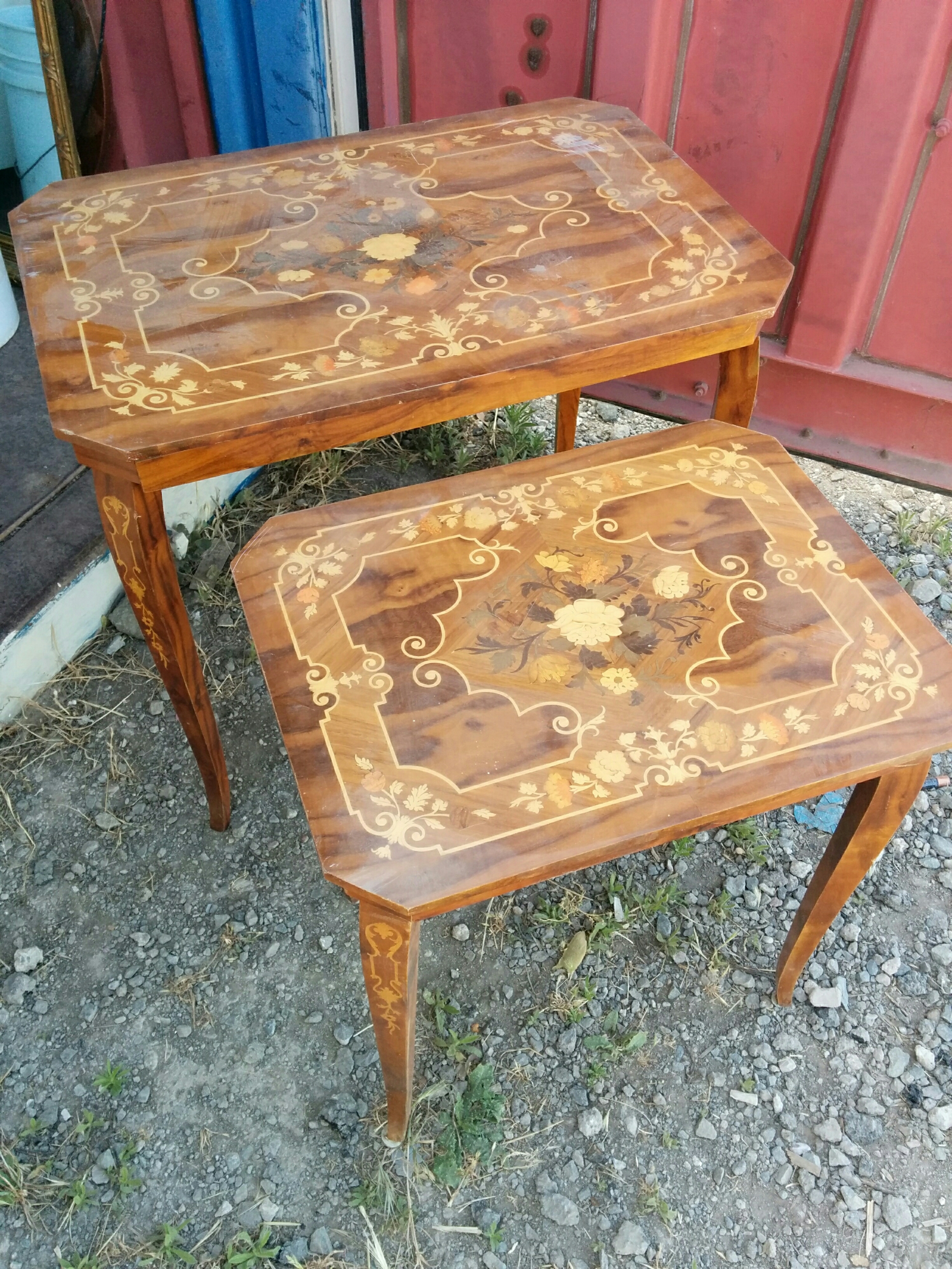 *SOLD* #0602 Nesting tables SOLD Larger one is 24″H x 26W x 18″D small one is 21H x 19.5 W x 15D. Some scratches Share this: Click to share on X (Opens in new window) X Click to share on Facebook (Opens in new window) Facebook Like Loading... Related