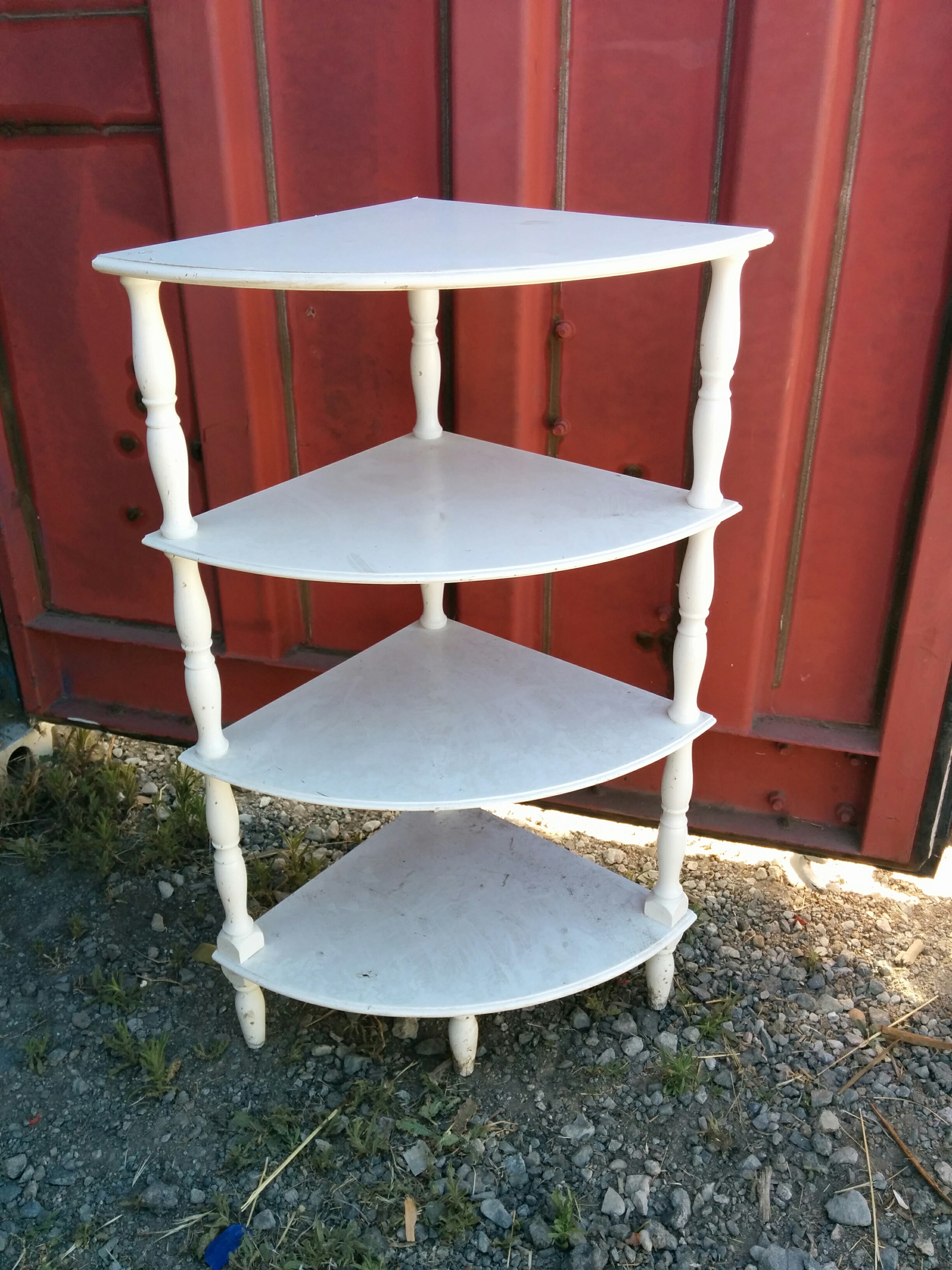 *SOLD* 0632 White 4 Shelf Corner Unit SOLD Sturdy – not wobbly – almost perfect… 32″H x 20″W x 14″D Share this: Click to share on X (Opens in new window) X Click to share on Facebook (Opens in new window) Facebook Like Loading... Related
