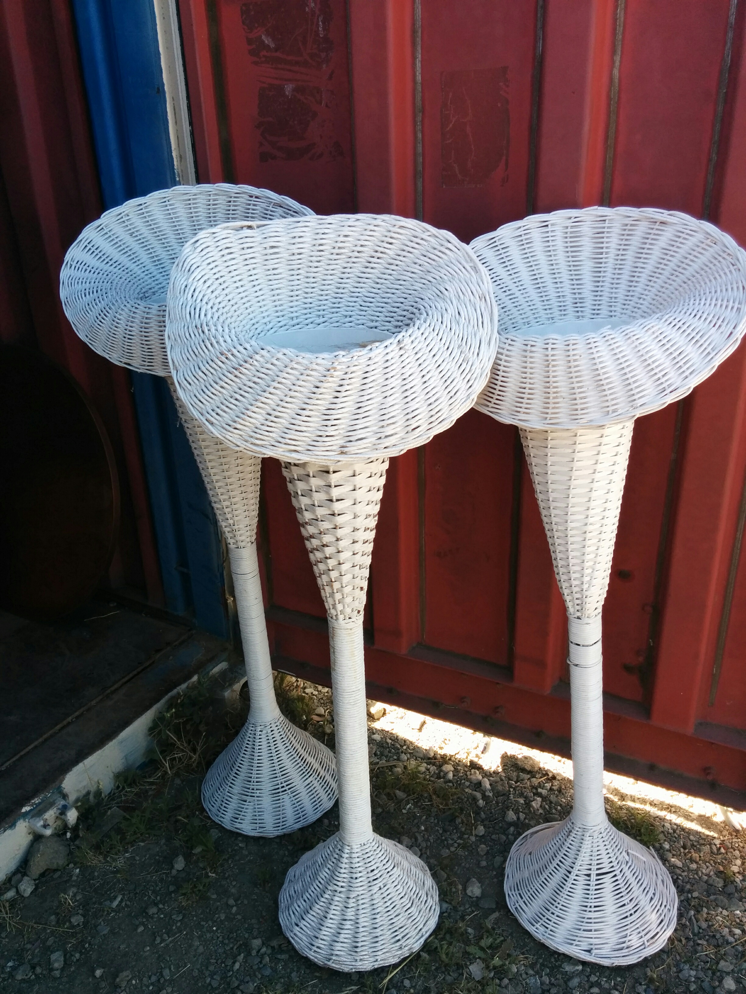 *SOLD* 0635 Wicker Plant Stands SOLD 46″T (backside) x 18″W x 12″D Good Condition – needs paint Share this: Click to share on X (Opens in new window) X Click to share on Facebook (Opens in new window) Facebook Like Loading... Related