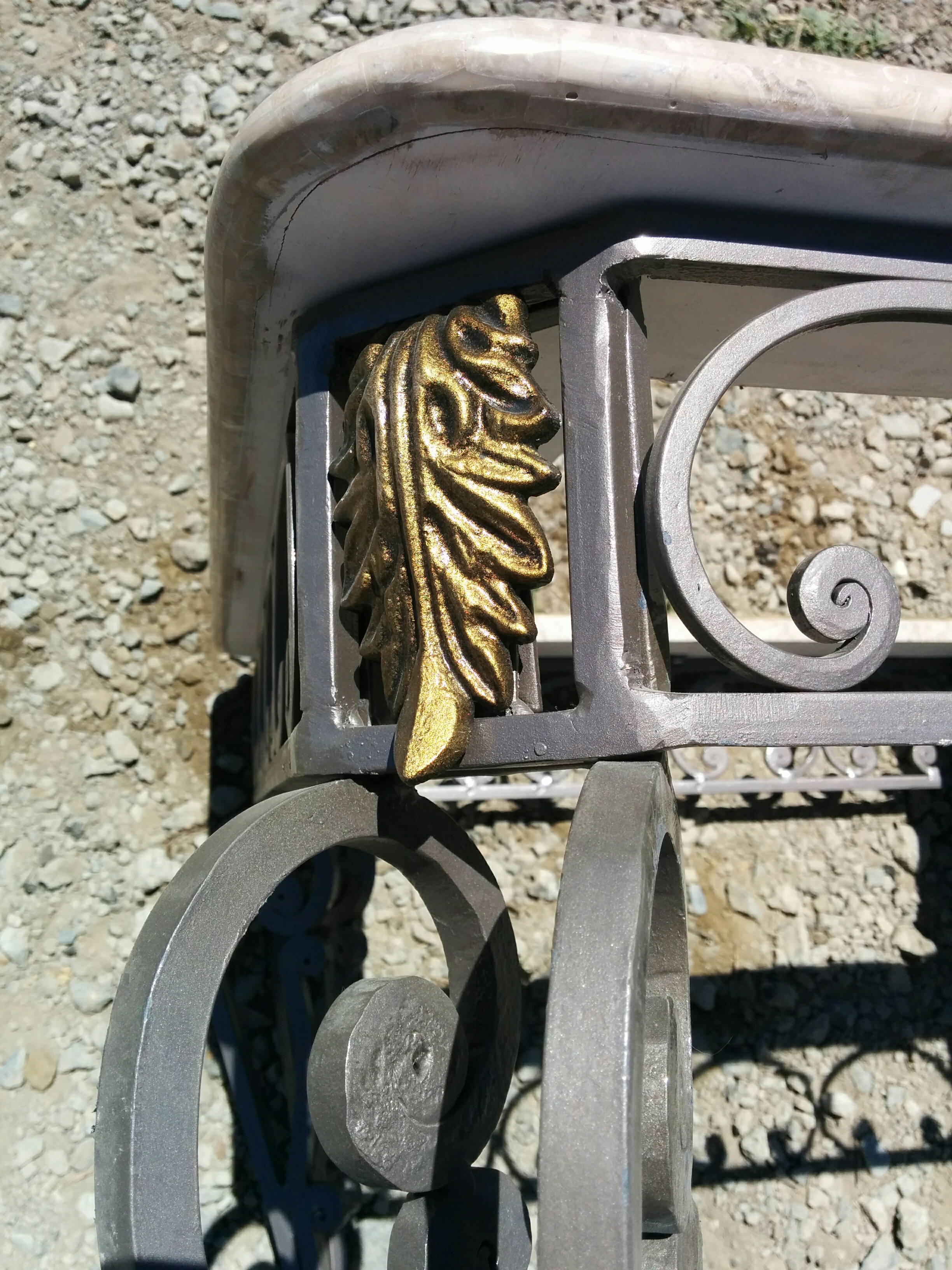 *SOLD* 0708 Iron Coffee Table w faux marble SOLD 15″H x 38″W x 38″ D – beautiful iron work – no glass Share this: Click to share on X (Opens in new window) X Click to share on Facebook (Opens in new window) Facebook Like Loading... Related