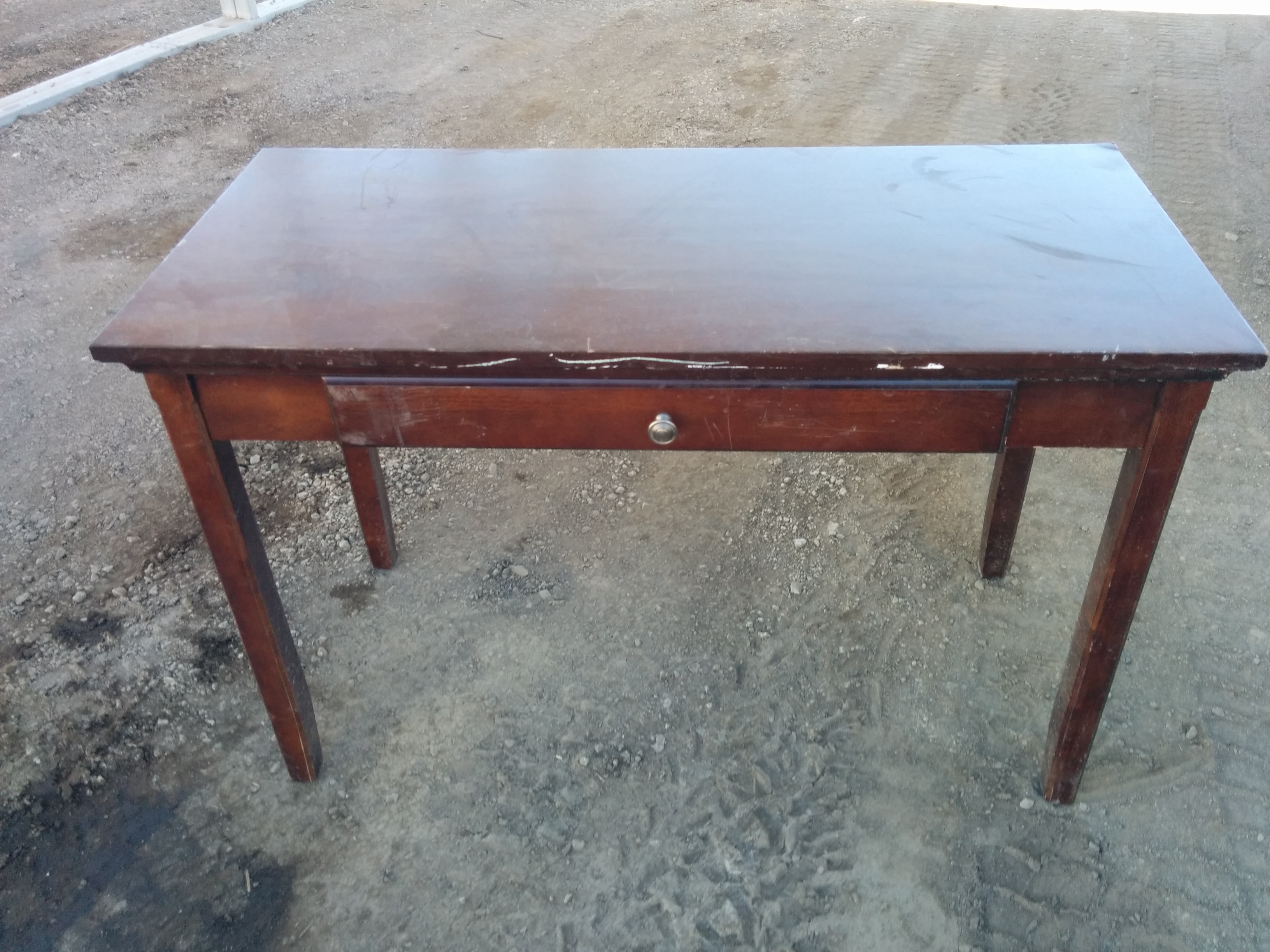 *SOLD* 0711 Simple Desk Furniture, SOLD, WIP This table desk has a few scratches but is solid. The drawer flips down for a keyboard. Don’t have the measurements at the moment. Maybe 48″ wide? Share this: Click to share on X (Opens in new window) X Click to share on Facebook (Opens in new window) Facebook Like Loading... Related