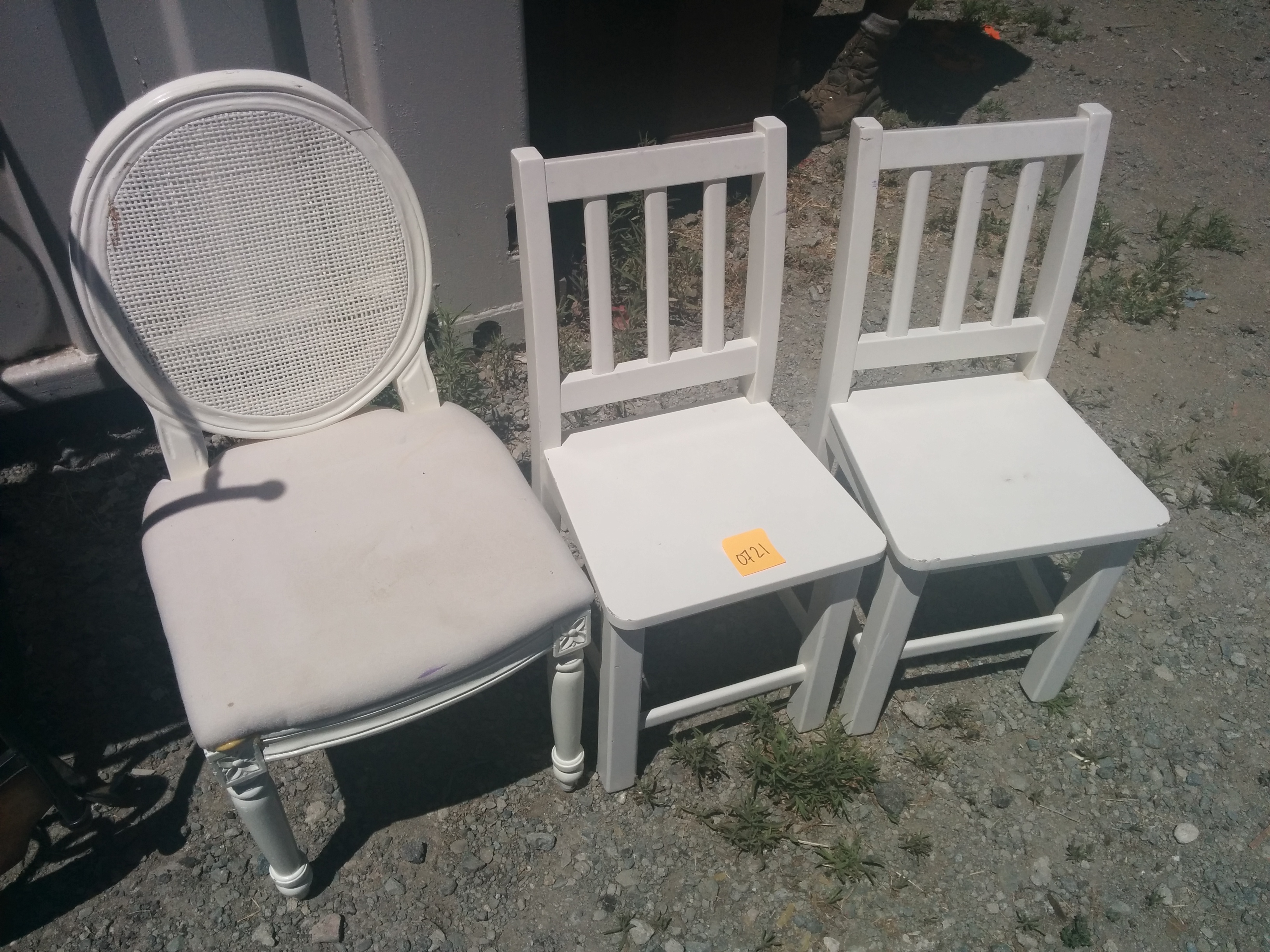 *SOLD* 0721 Kid’s Chairs (2 Plain & 1 Fancy) SOLD Plain wood chairs are 13″H to seat + 12.5″back x 12″W x 11″D. The fancy one with the round back & padded seat is 14″H to seat + 14″back x 15″w x 14″D. The back is broken but can be easily glued. Share this: Click to share on X (Opens in new window) X Click to share on Facebook (Opens in new window) Facebook Like Loading... Related