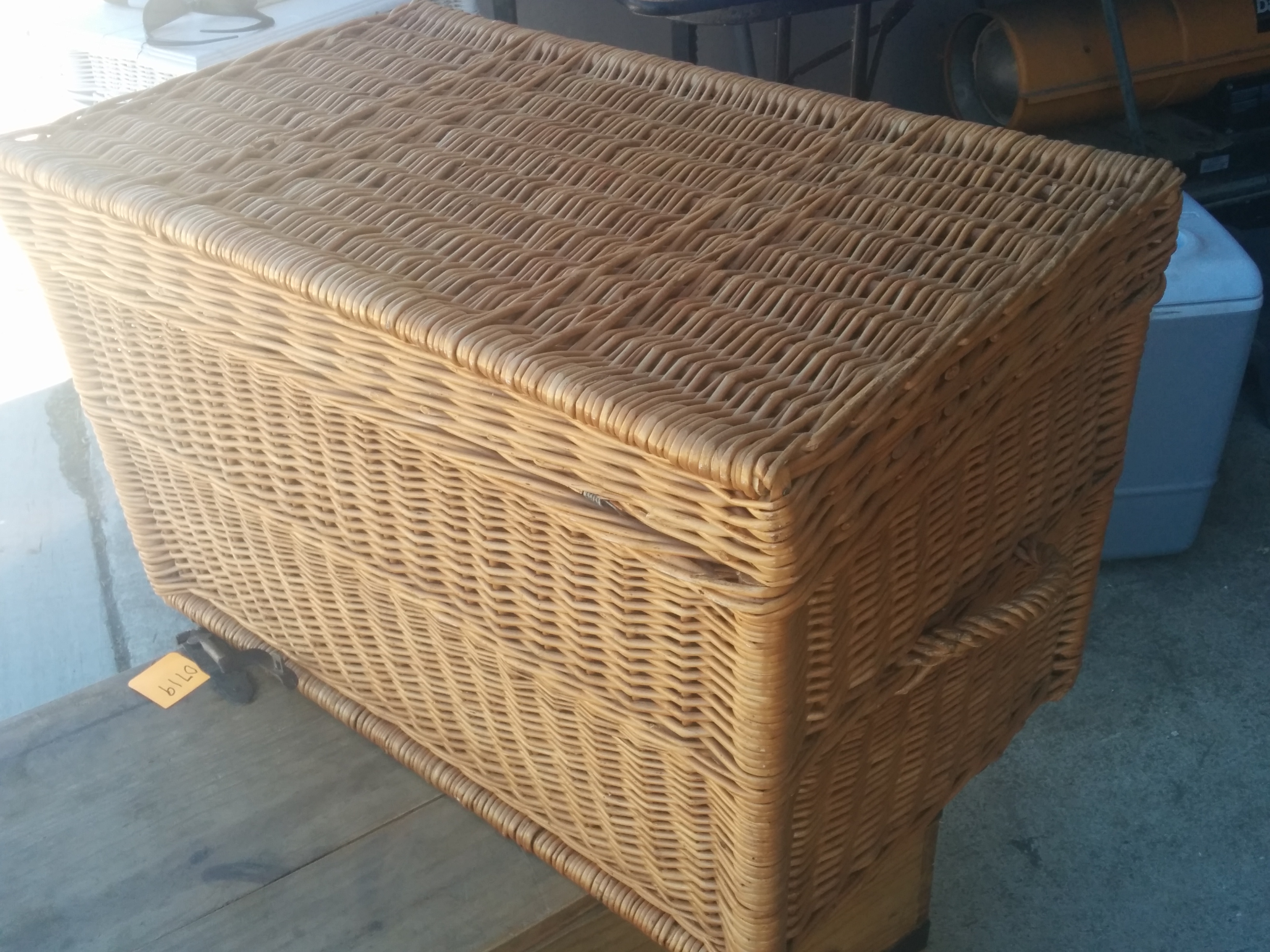 *SOLD* 0723 Rectangle Basket w/ Side Handles SOLD Sturdy, some wicker is broken but not really noticeable. 17.5″H x 28″W x 17″D Share this: Click to share on X (Opens in new window) X Click to share on Facebook (Opens in new window) Facebook Like Loading... Related