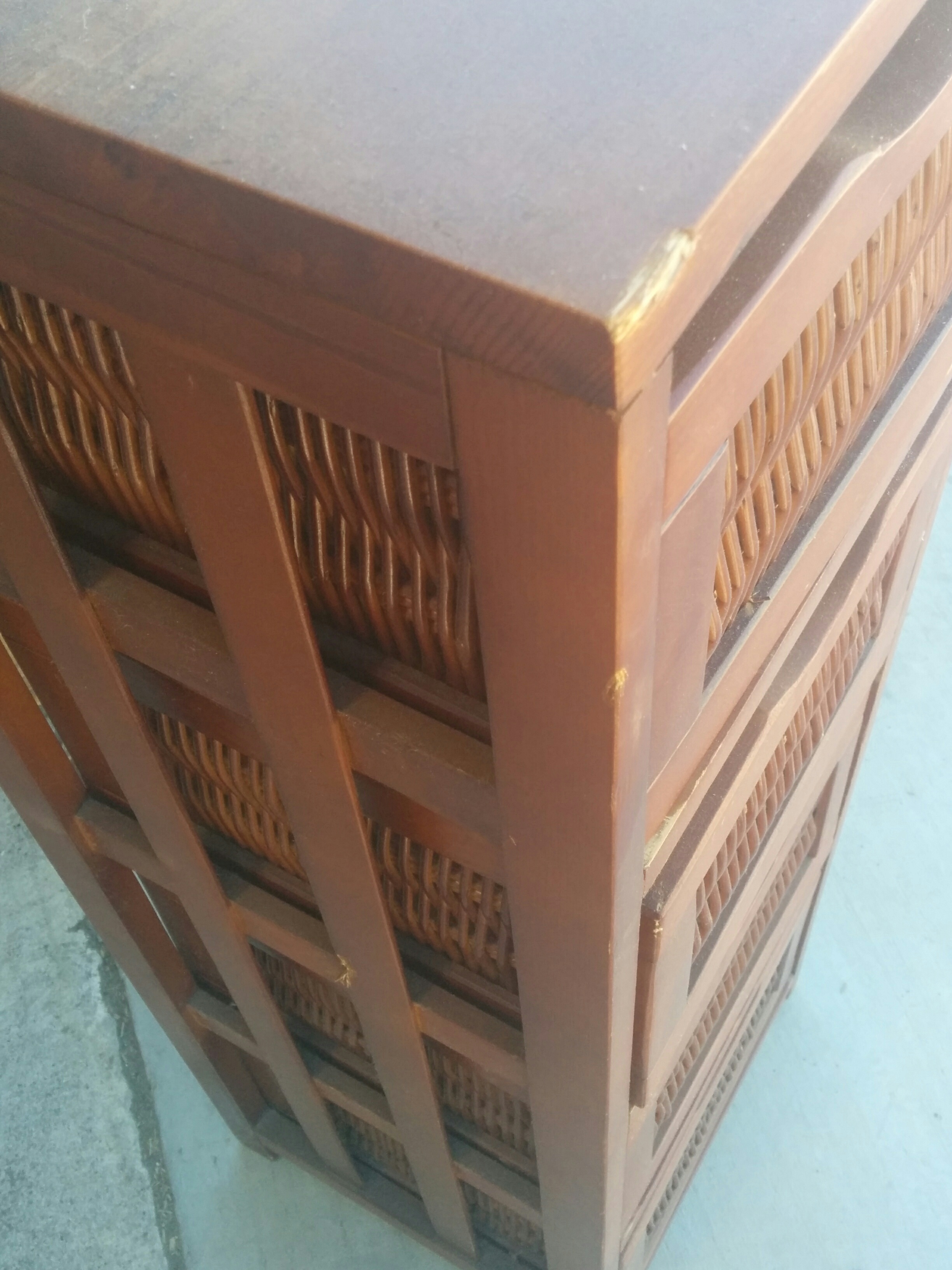 0725 Wood & Wicker Drawers Available Few scratches/nicks. Sturdy. 34″H x 11.5″W x 11″D Share this: Click to share on X (Opens in new window) X Click to share on Facebook (Opens in new window) Facebook Like Loading... Related