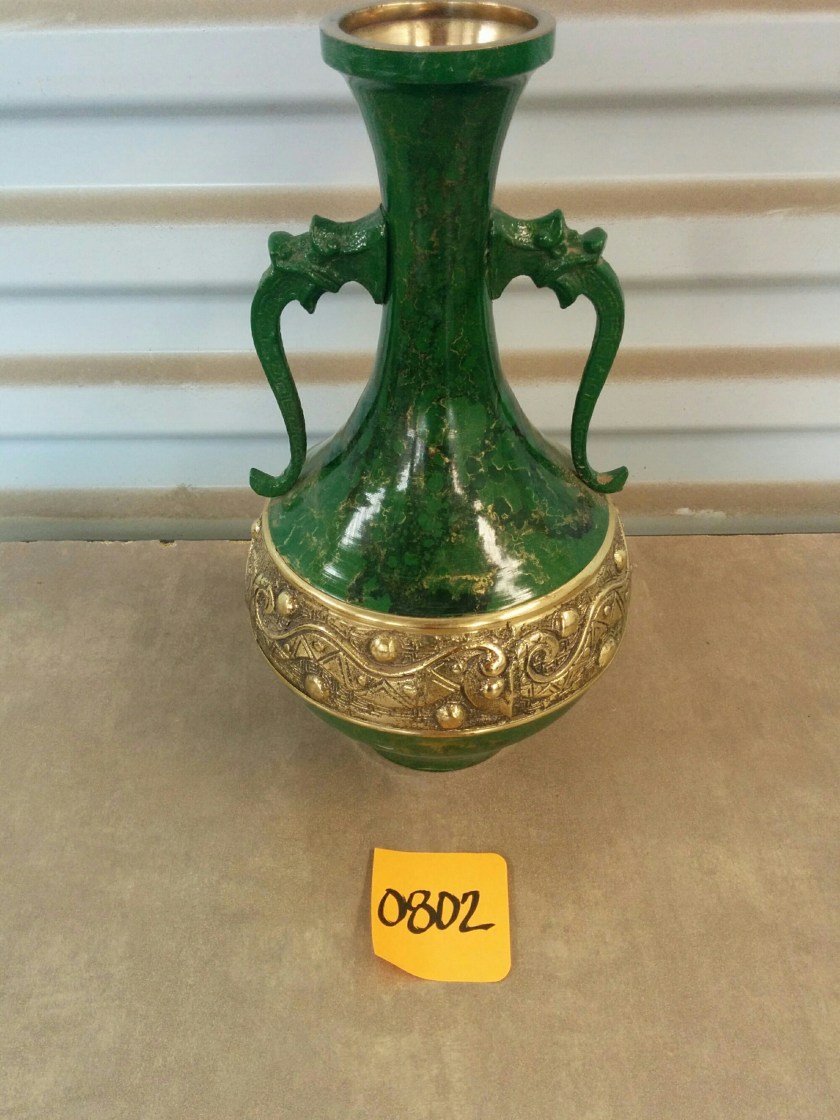 *SOLD* 0802 Green Metal Vase SOLD Not sure what type of metal but relatively heavy. 11″H x 6″D Share this: Share on X (Opens in new window) X Share on Facebook (Opens in new window) Facebook Like Loading... Related