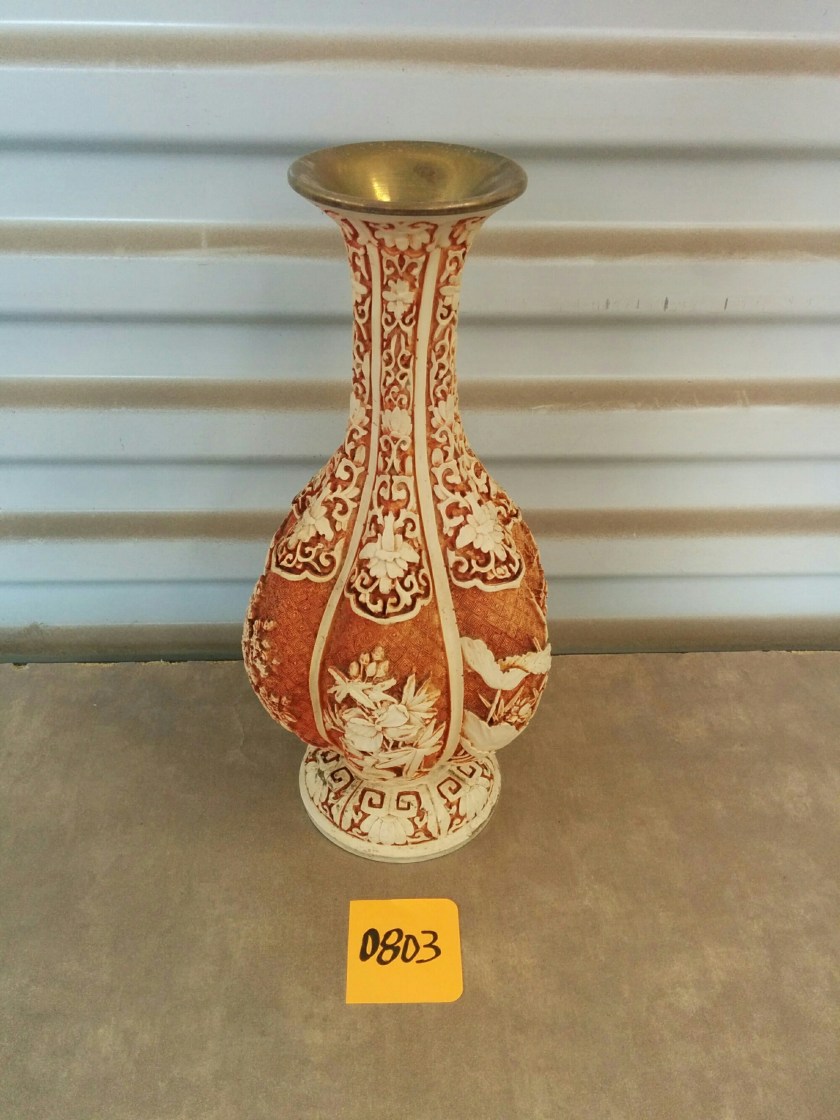 *SOLD* 0803 Vase w Copper Inside & Wood or Bone Outside Design SOLD 12.5H x 6″ at widest Share this: Click to share on X (Opens in new window) X Click to share on Facebook (Opens in new window) Facebook Like Loading... Related