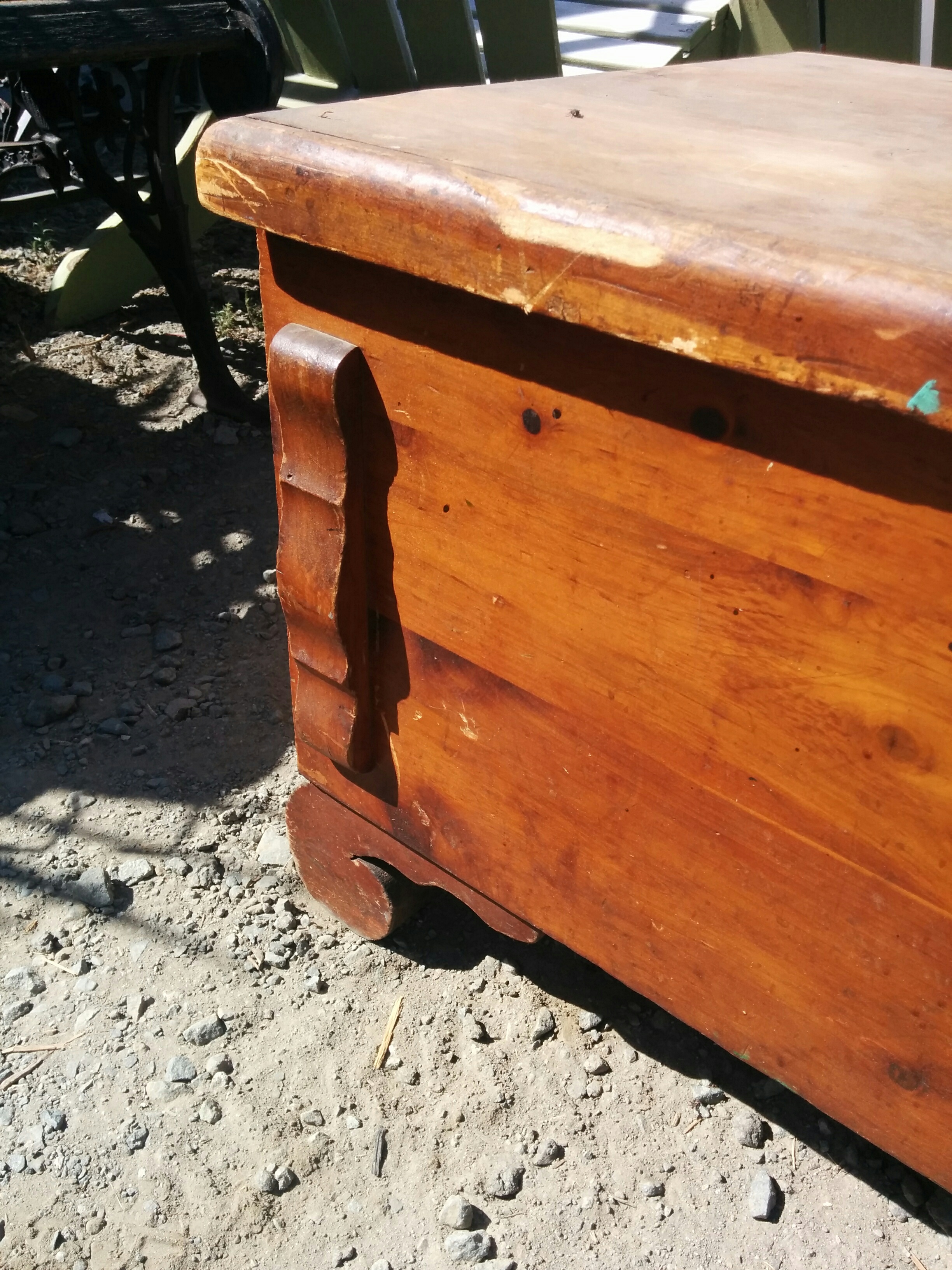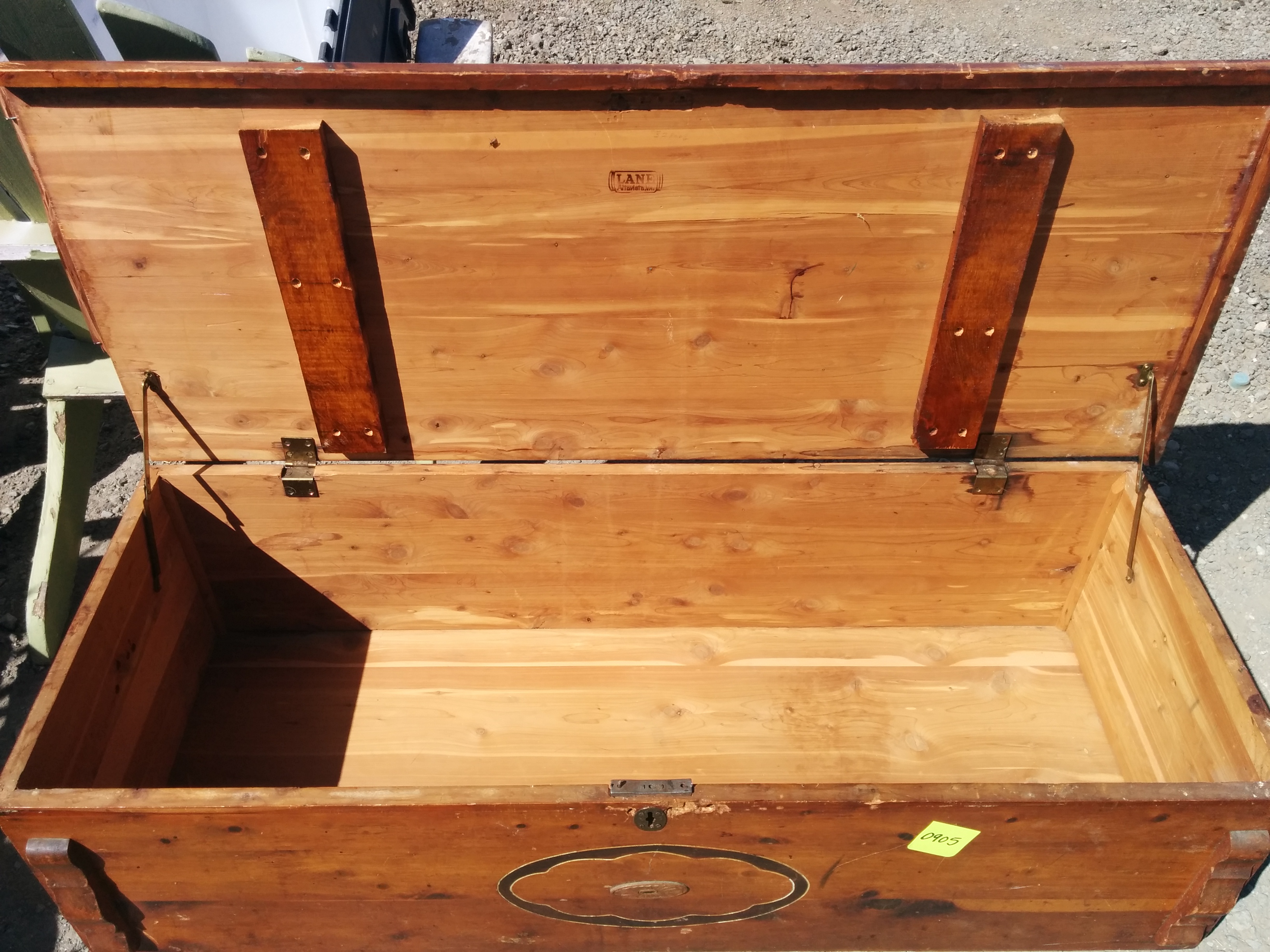 *SOLD* 0905 Lane Cedar Chest SOLD Nice chest. Needs help. It is cedar and has a nice detail. There is a corner piece that needs replacing (last picture). I can have that replaced but it would be not be a perfect match. Lock does NOT work. 17″ H x 47.5″ W x 19″ D Share this: Click to share on X (Opens in new window) X Click to share on Facebook (Opens in new window) Facebook Like Loading... Related