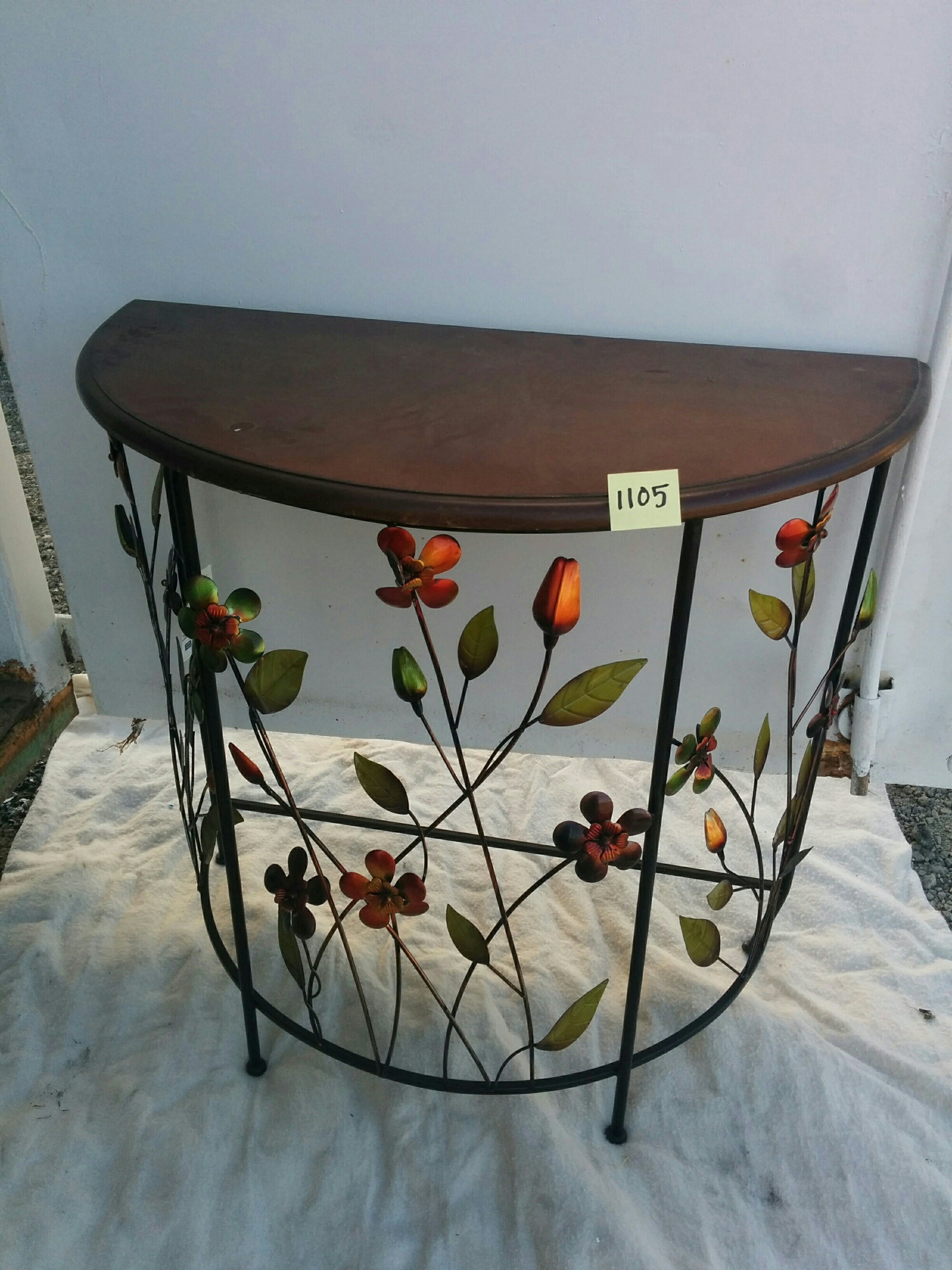 *SOLD* 1105 Half Circle Metal Table w Wood Top SOLD 30″H x 31″ W x 16″D. Good condition. Share this: Click to share on X (Opens in new window) X Click to share on Facebook (Opens in new window) Facebook Like Loading... Related