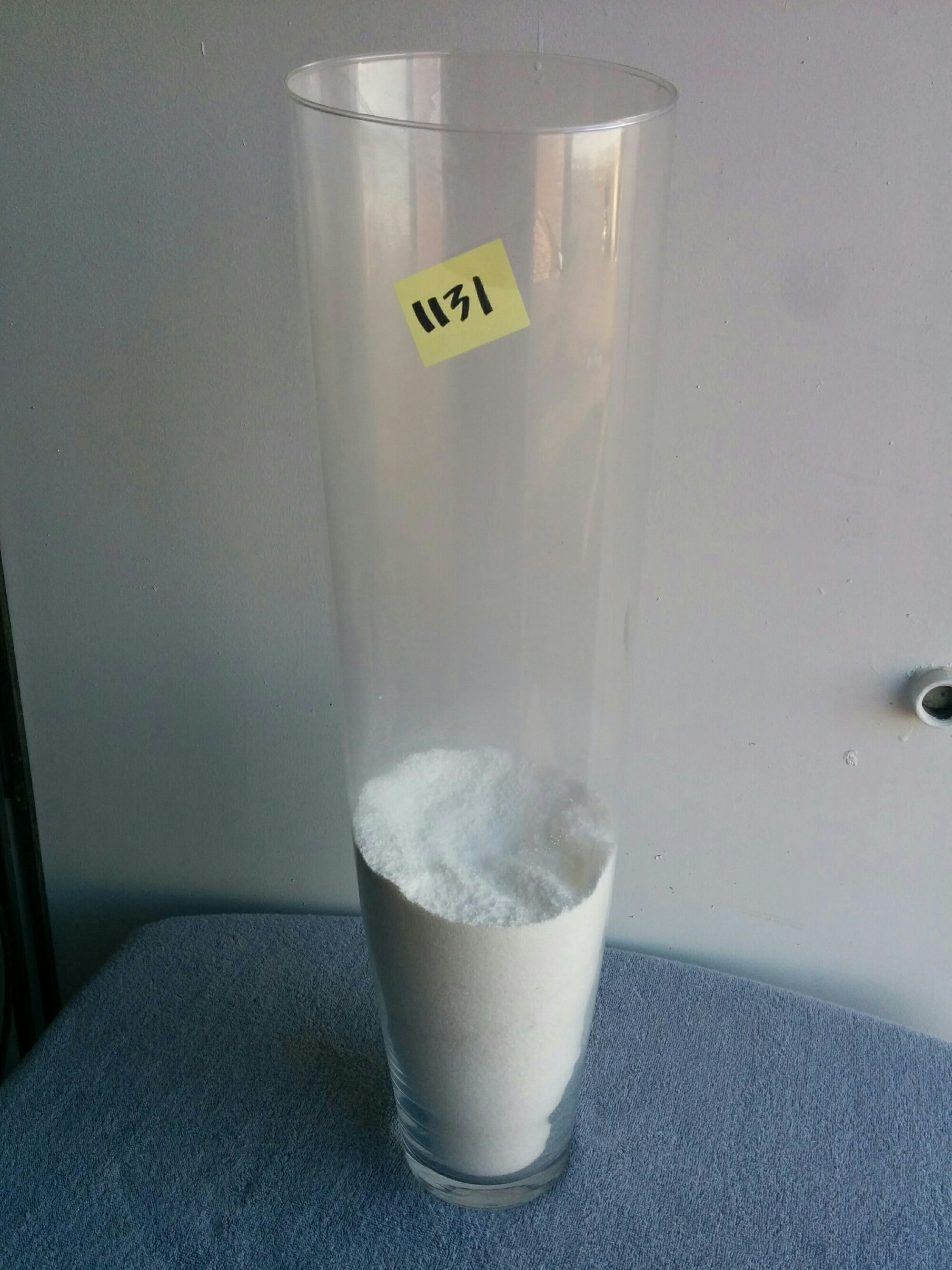 1131 Glass Vase Available I think the white stuff is where you poke the fake flowers in. 26″Tall in front and 27.5″ tall in the back. 7.5″ Diameter. Share this: Click to share on X (Opens in new window) X Click to share on Facebook (Opens in new window) Facebook Like Loading... Related