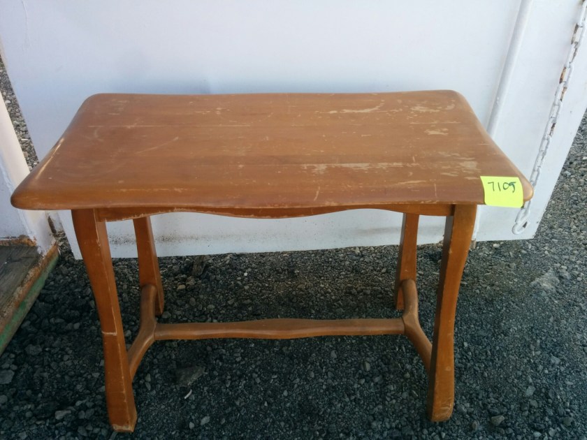 *SOLD* 7105 Small Curvy Table SOLD, WIP Solid wood, legs curvy shape. 22″H x 27.5″W x 15″D Share this: Click to share on X (Opens in new window) X Click to share on Facebook (Opens in new window) Facebook Like Loading... Related
