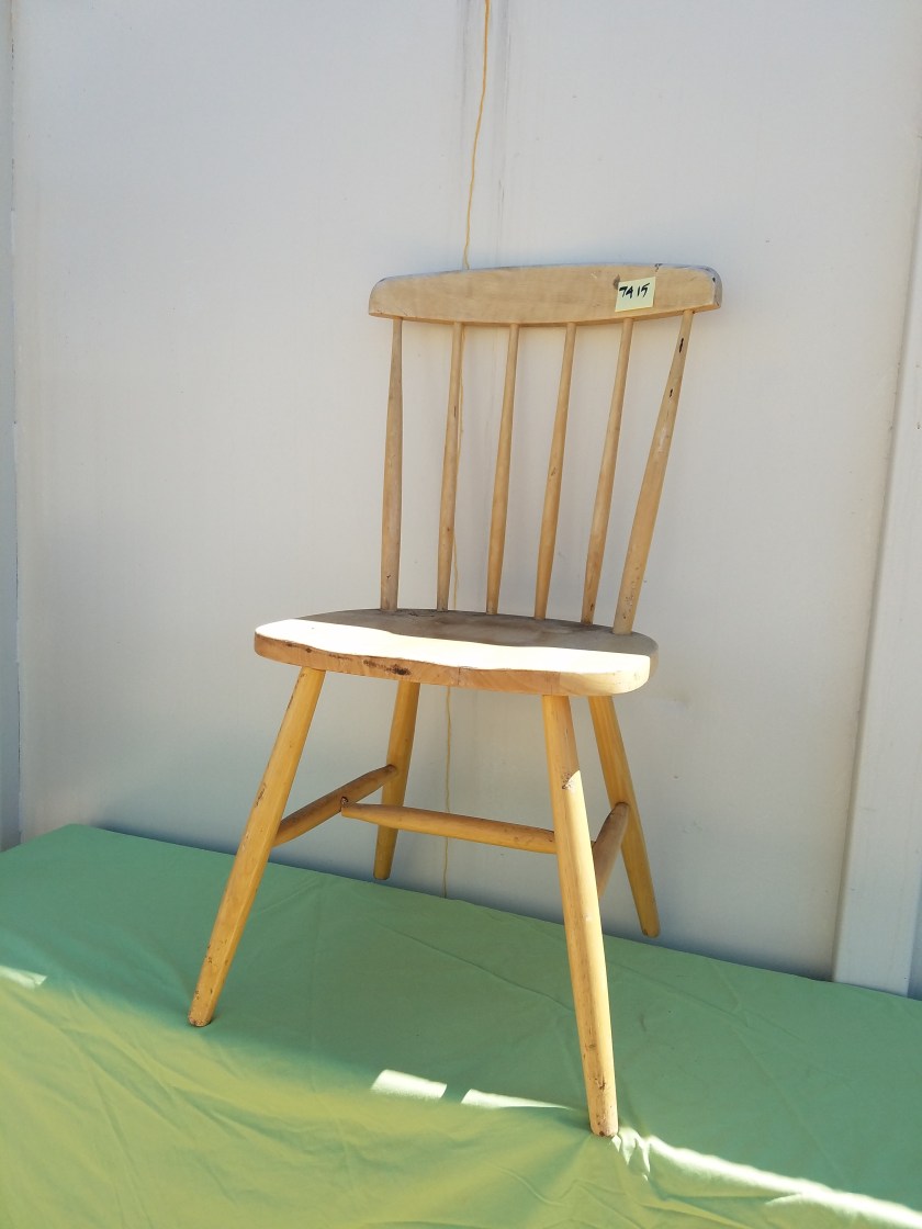 7415 Maple Spindle Chair Available, Furniture I think it is maple. Solid wood. 17″ H to seat x 17″ W x 17.5″ D + 18″ high back. Share this: Click to share on X (Opens in new window) X Click to share on Facebook (Opens in new window) Facebook Like Loading... Related