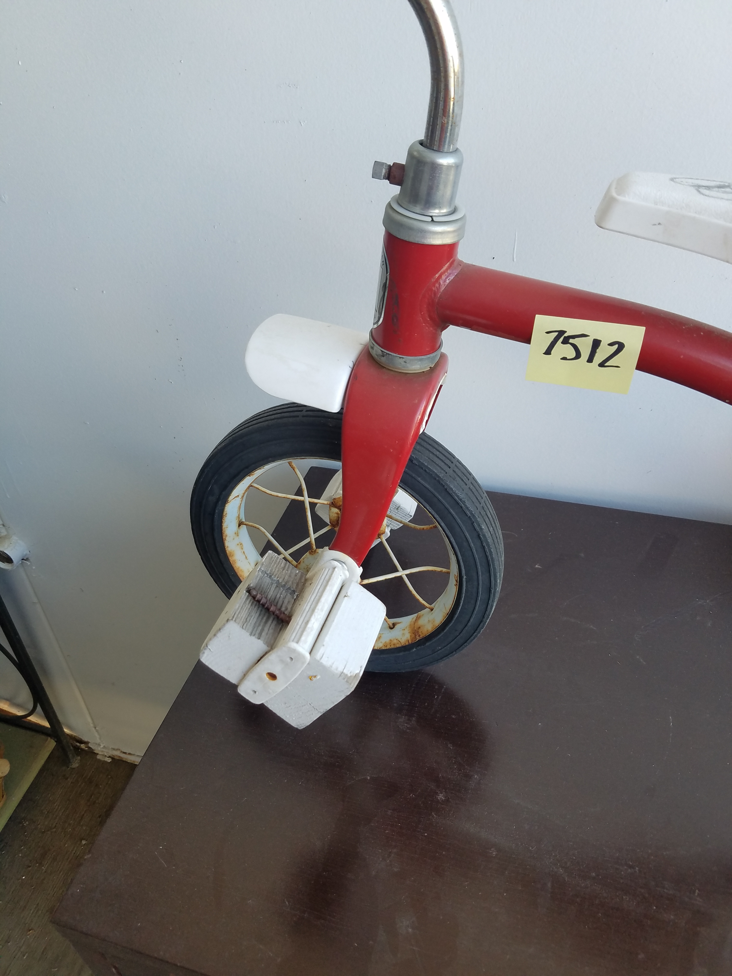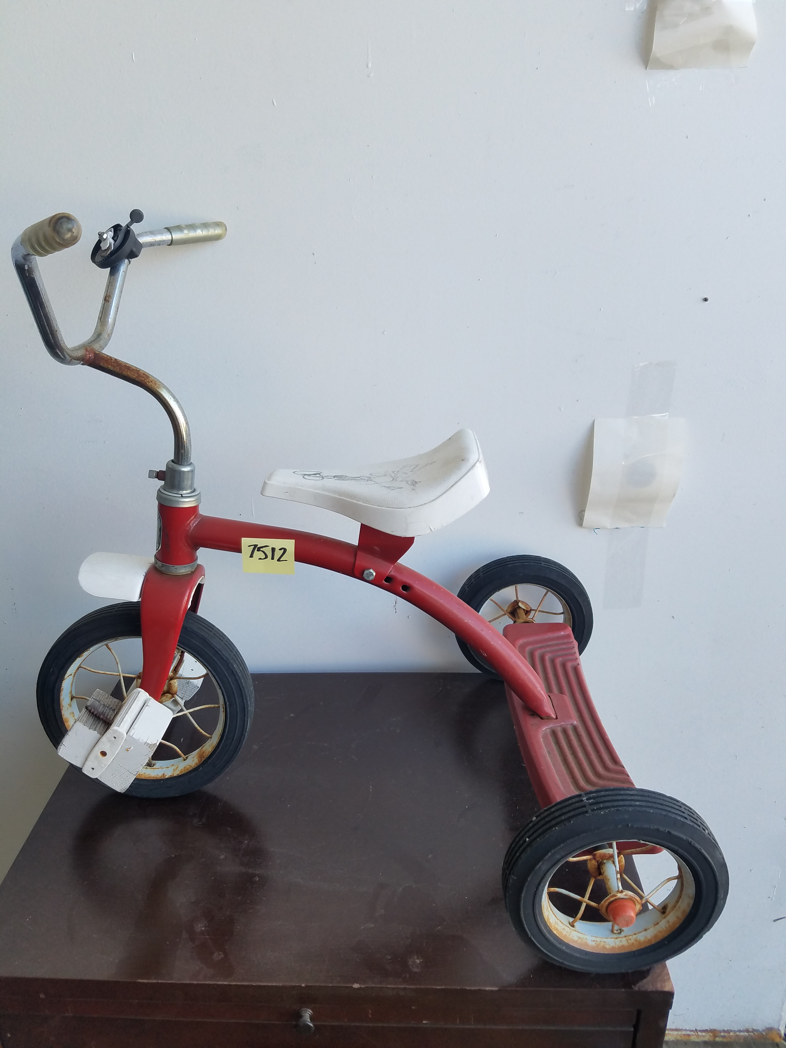 *SOLD* 7512 Metal Tricycle SOLD Complete with wooden blocks on the petals! 23.5″ to handle bars – 18″ between back tires. Share this: Click to share on X (Opens in new window) X Click to share on Facebook (Opens in new window) Facebook Like Loading... Related