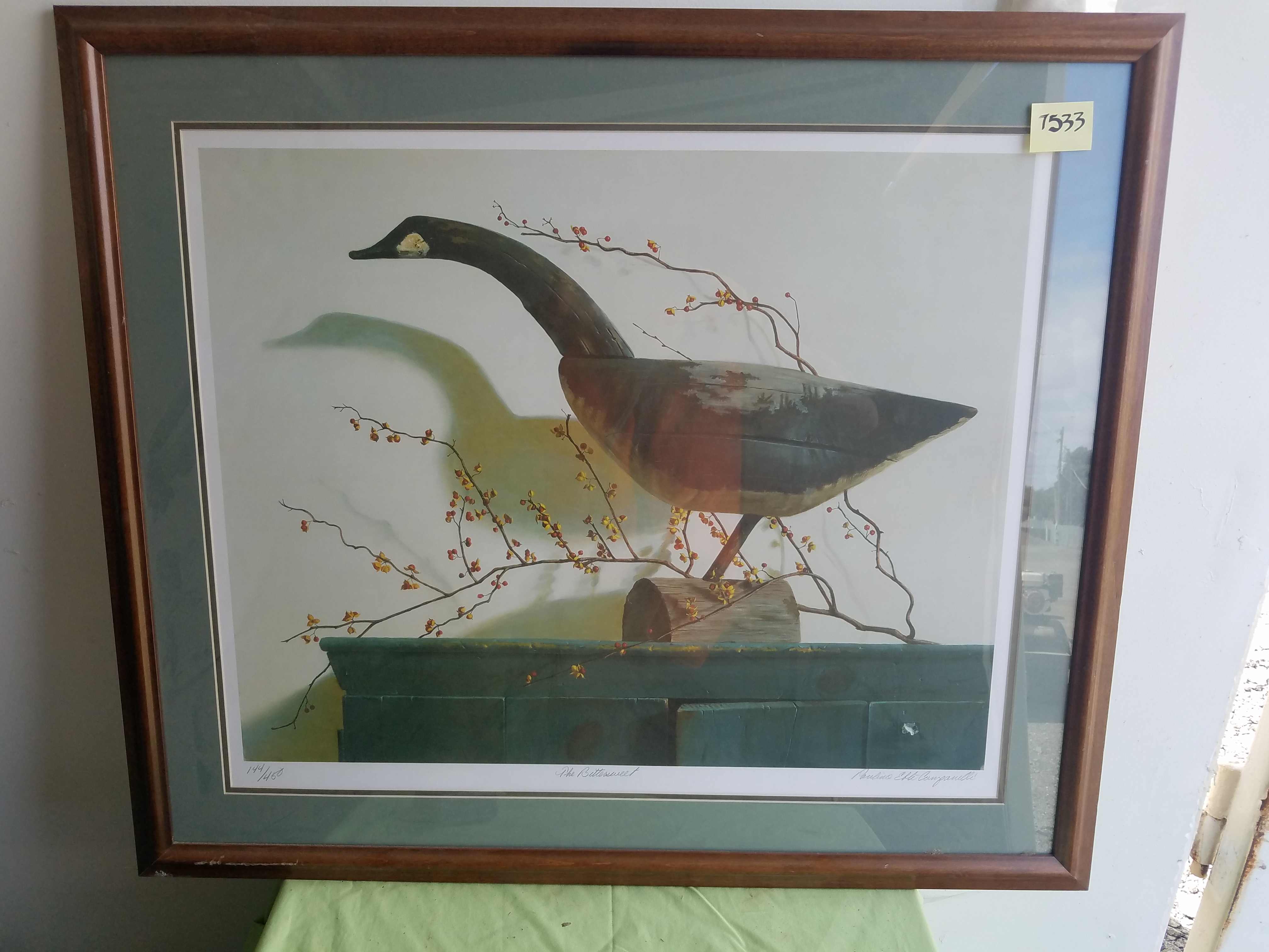 7533 Duck Picture Available looks original but no guarantees! 31″ x 36″. Small scratches on edge of frame. Share this: Click to share on X (Opens in new window) X Click to share on Facebook (Opens in new window) Facebook Like Loading... Related