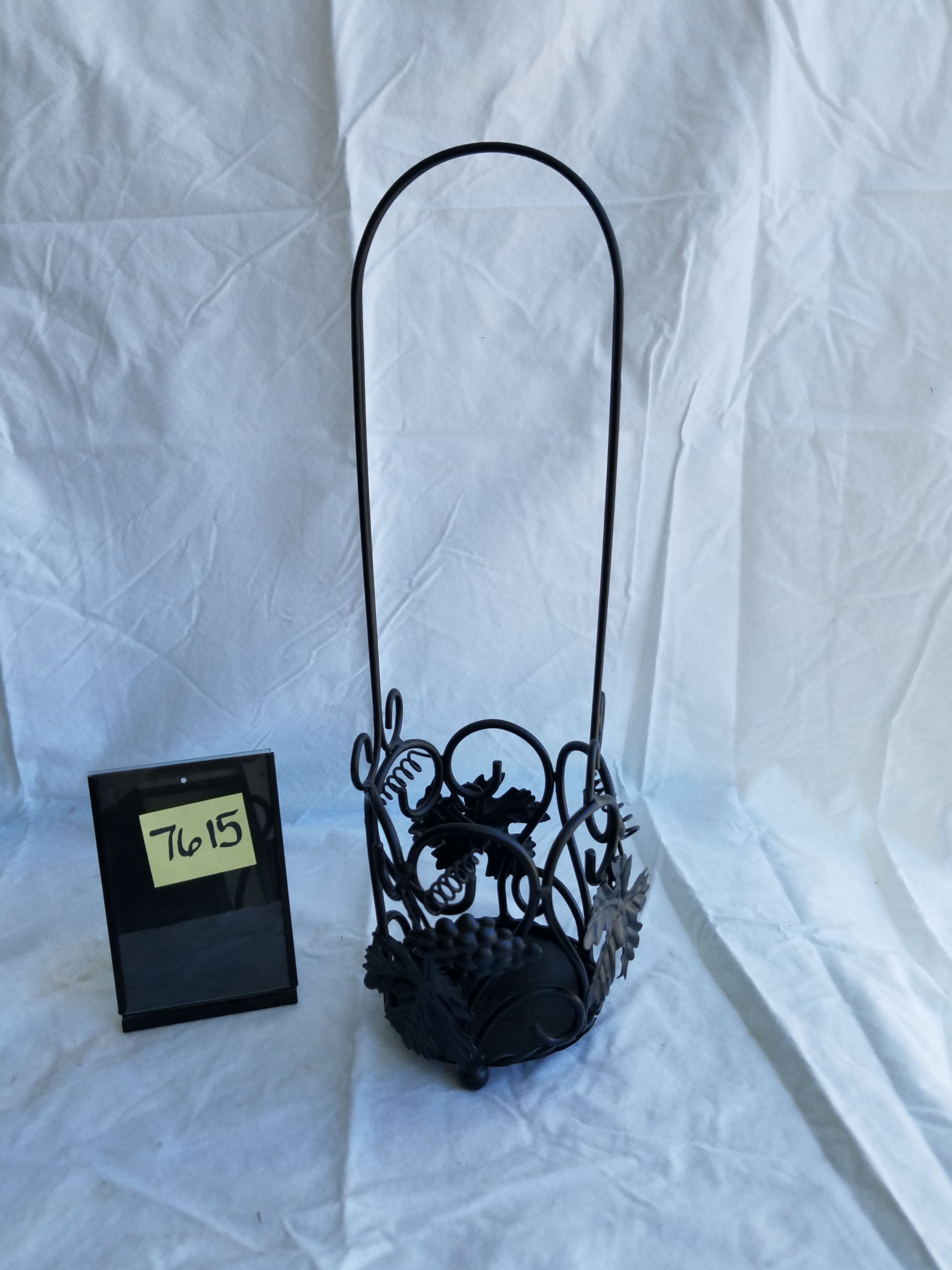 7615A Single Wine Bottle Holder, Grape Motif Available 16″T x 4.25″D Base with design is 4″Tall. Perfect condition. Share this: Click to share on X (Opens in new window) X Click to share on Facebook (Opens in new window) Facebook Like Loading... Related