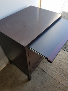 *SOLD* 7304 Set of TWO Office Side Tables Furniture, SOLD There are TWO of these tables. They have a pull out shelf, hence, the thought that they were used as office furniture. Some scratches as shown. 29″H x 24″W x 18″D One drawer, bottom is a cabinet without shelves, good storage. Share this: Click to share on X (Opens in new window) X Click to share on Facebook (Opens in new window) Facebook Like Loading... Related