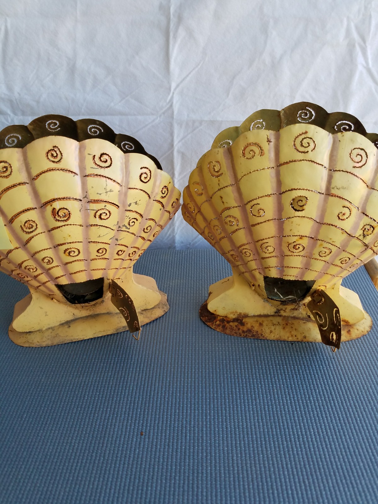 *SOLD* 7725 Metal Sea Shell Candle Holders Outdoor Stuff, SOLD 11″H x 13″W x 4.5 D (opening at top). Rusty. Share this: Click to share on X (Opens in new window) X Click to share on Facebook (Opens in new window) Facebook Like Loading... Related