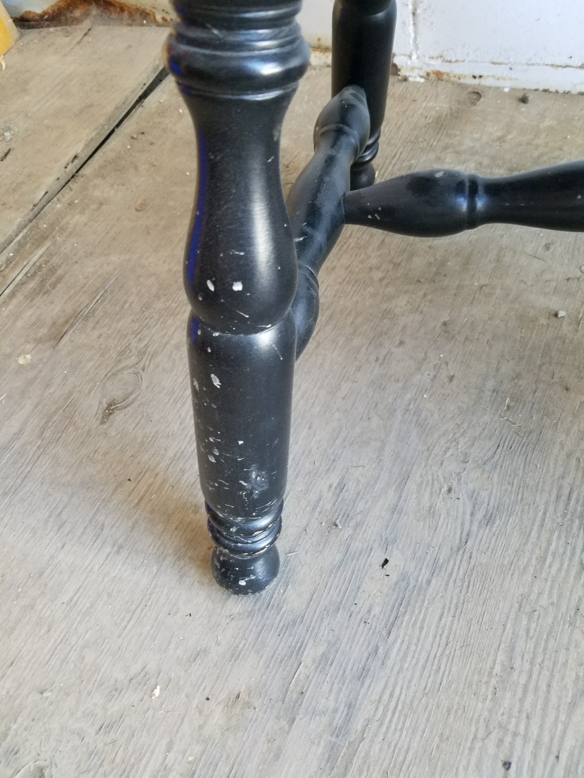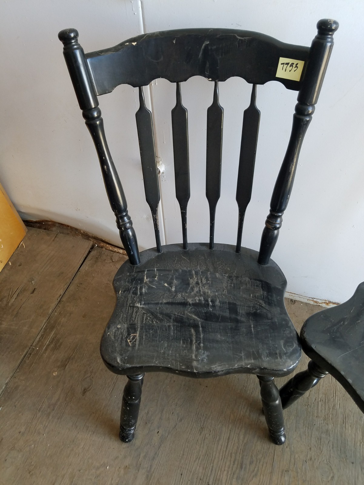 *SOLD* 7753 Four Black Chairs Furniture, SOLD Four matching chairs – all painted black with the paint peeling and chipping off. The wood seams show on the seat, which is maybe why they were painted. 18″ to seat + 22.5″ for the back. The seat is 18″W x 16.5″ Deep. Share this: Click to share on X (Opens in new window) X Click to share on Facebook (Opens in new window) Facebook Like Loading... Related