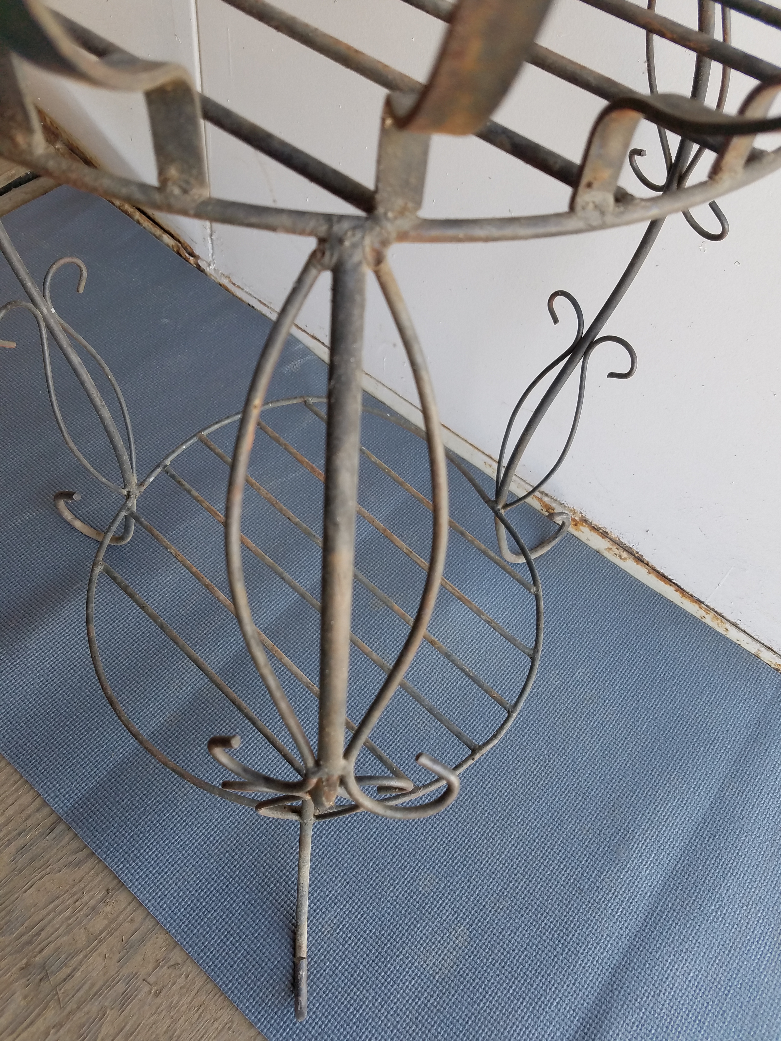 7920 Big Metal plant stand Available, Outdoor Stuff 36″ H x 17.5D on top x 23″D at widest section. Bottom section is not a perfect circle but it stands solid. Maybe you can figure out what to do with it? Share this: Click to share on X (Opens in new window) X Click to share on Facebook (Opens in new window) Facebook Like Loading... Related