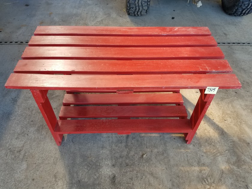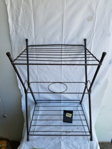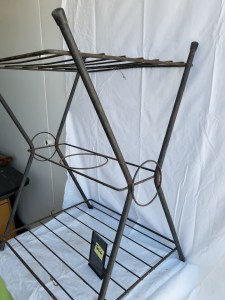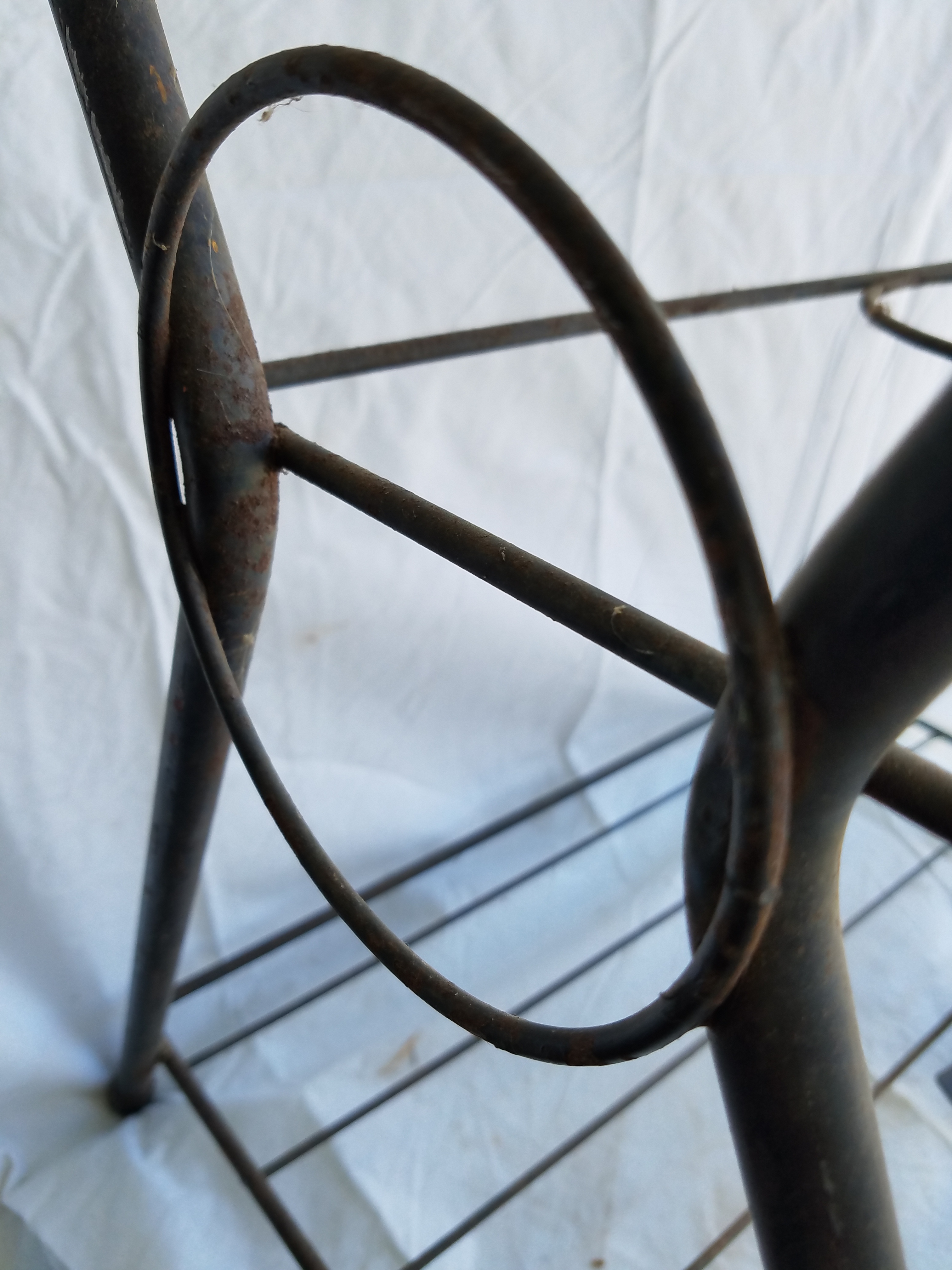 *SOLD* 7626B Metal Table Outdoor Stuff, SOLD 27.5H x 20.5″L x 20″D – The circles on the side are 6.5″D – I can have a plywood board made for small additional fee.