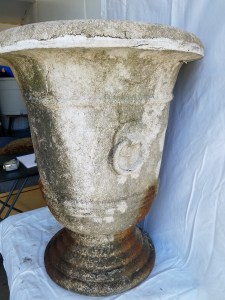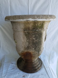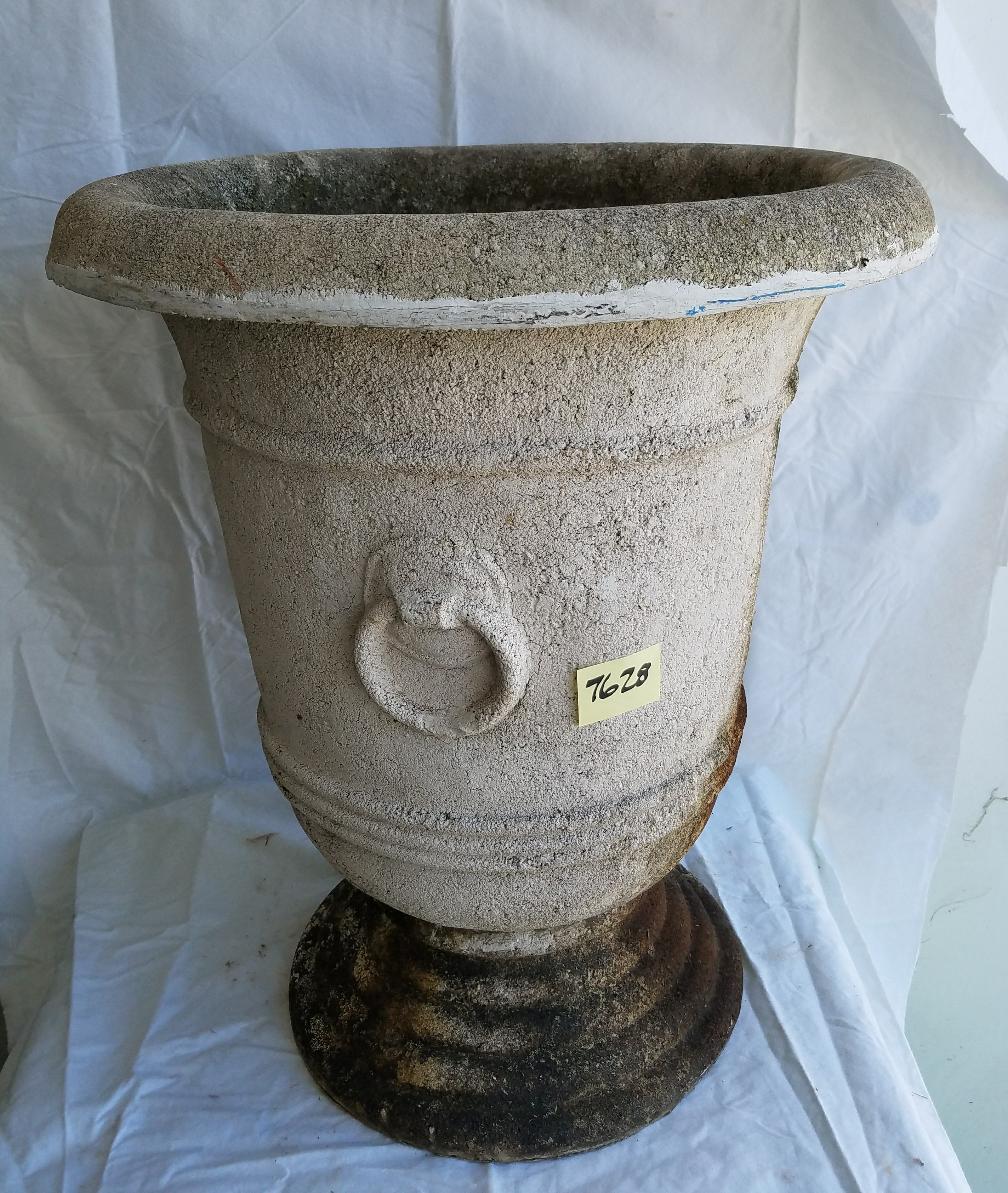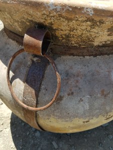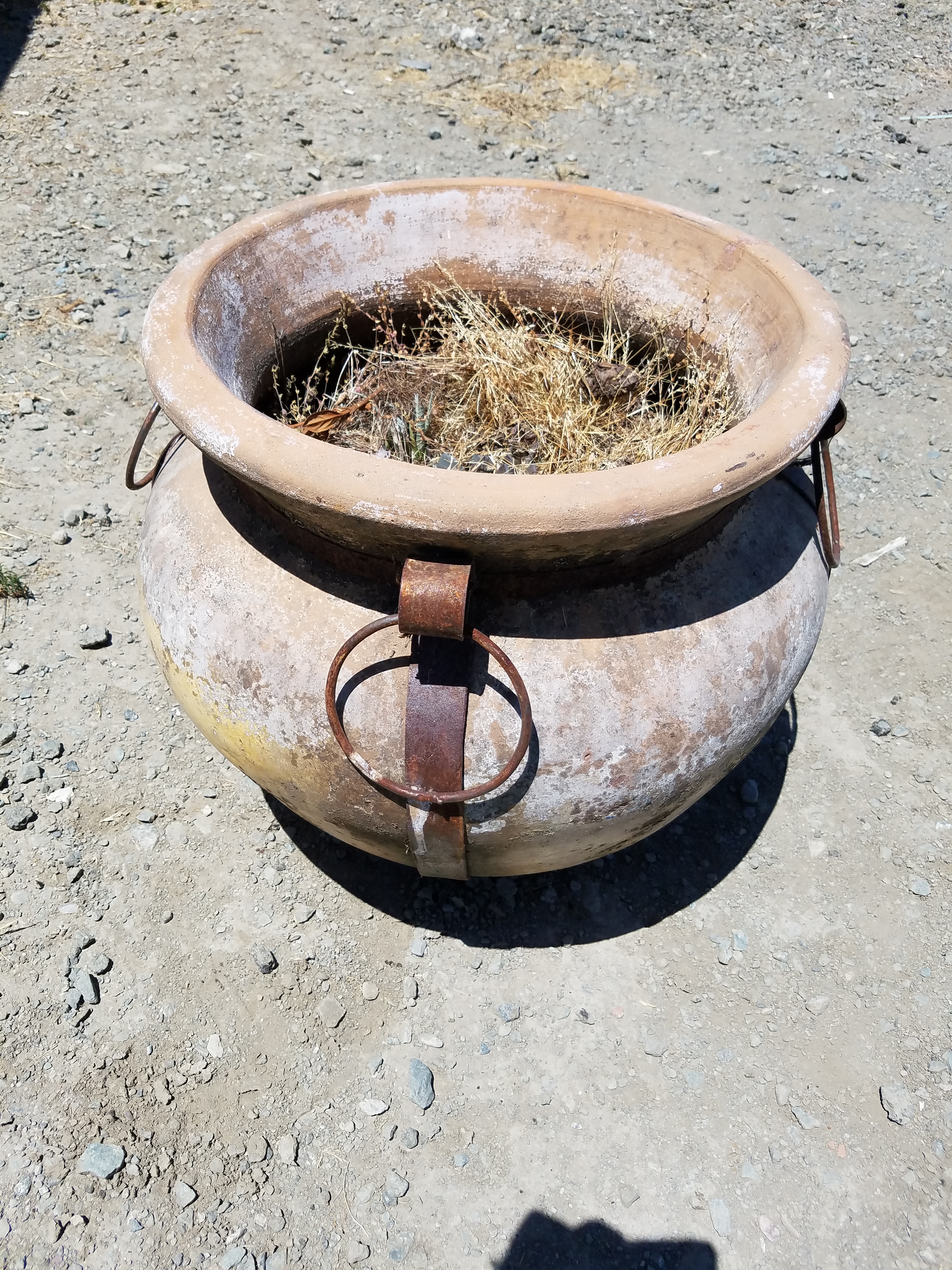 *SOLD* 7629 Planter w Metal Rings Outdoor Stuff, SOLD Very cool. Still has a small succulent in it. 24″H x 20″D