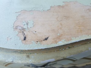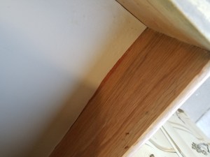 All wood, some scratches and dents, easily sanded. 36″ x 31″ x 1.5″