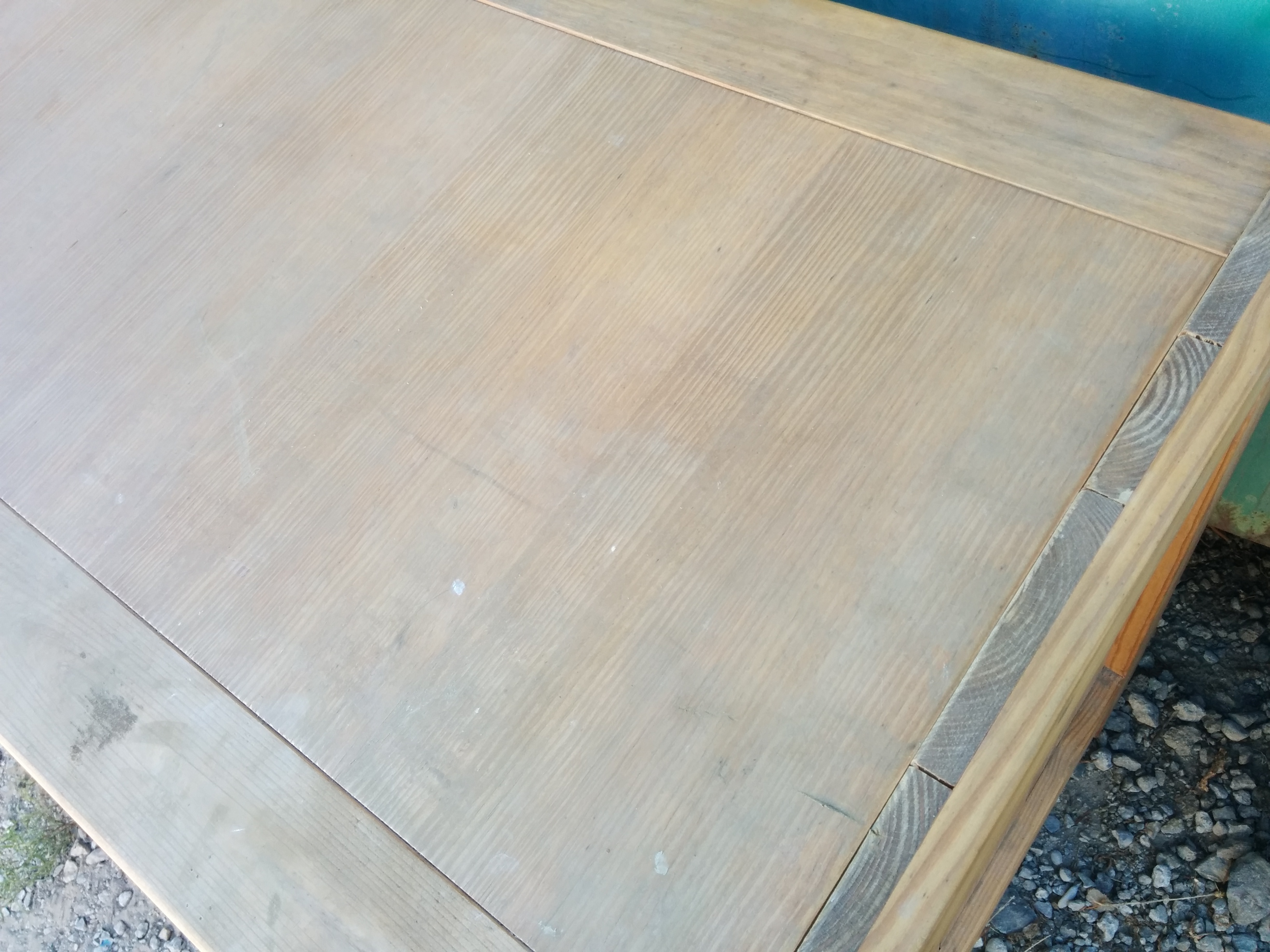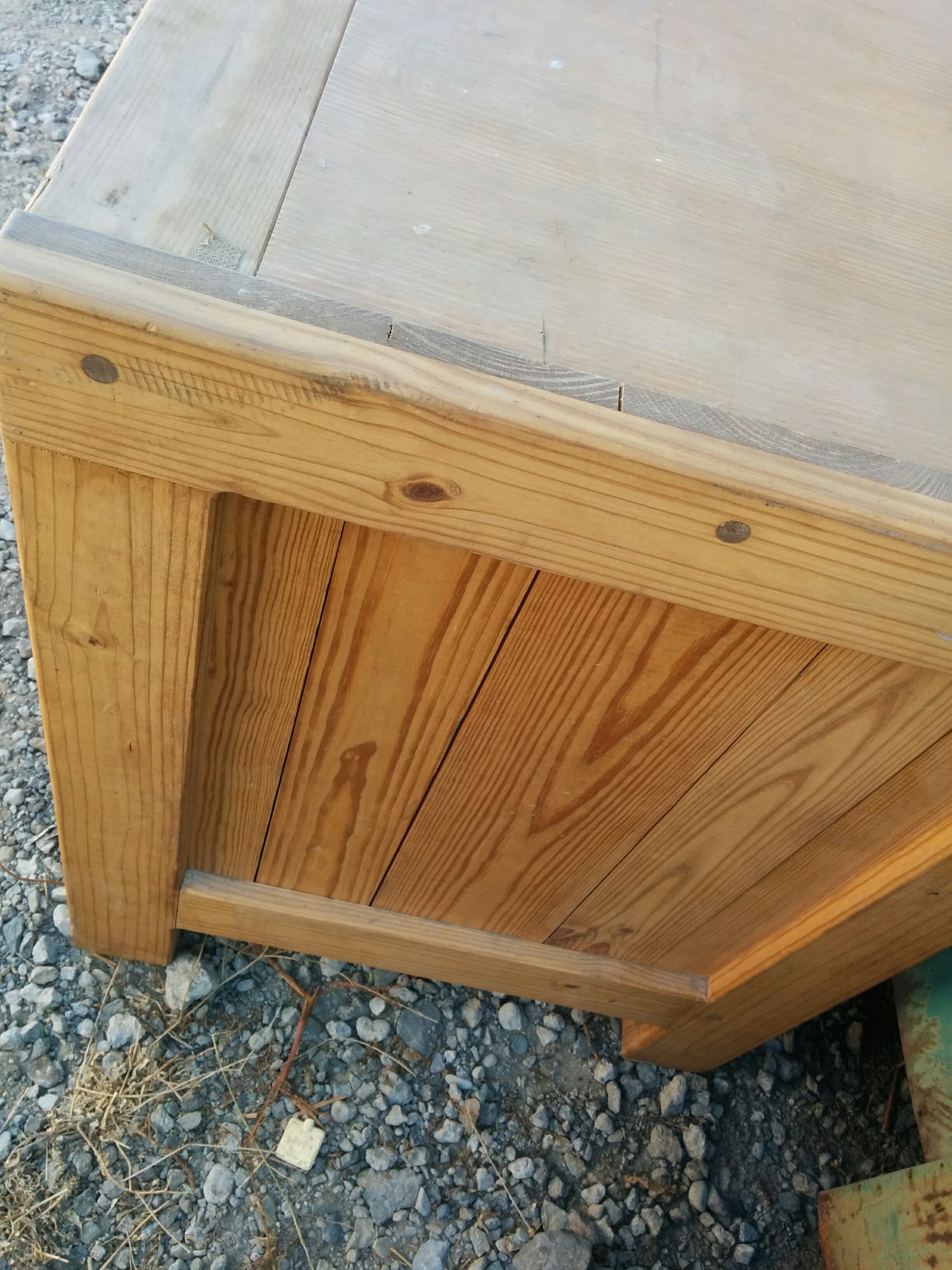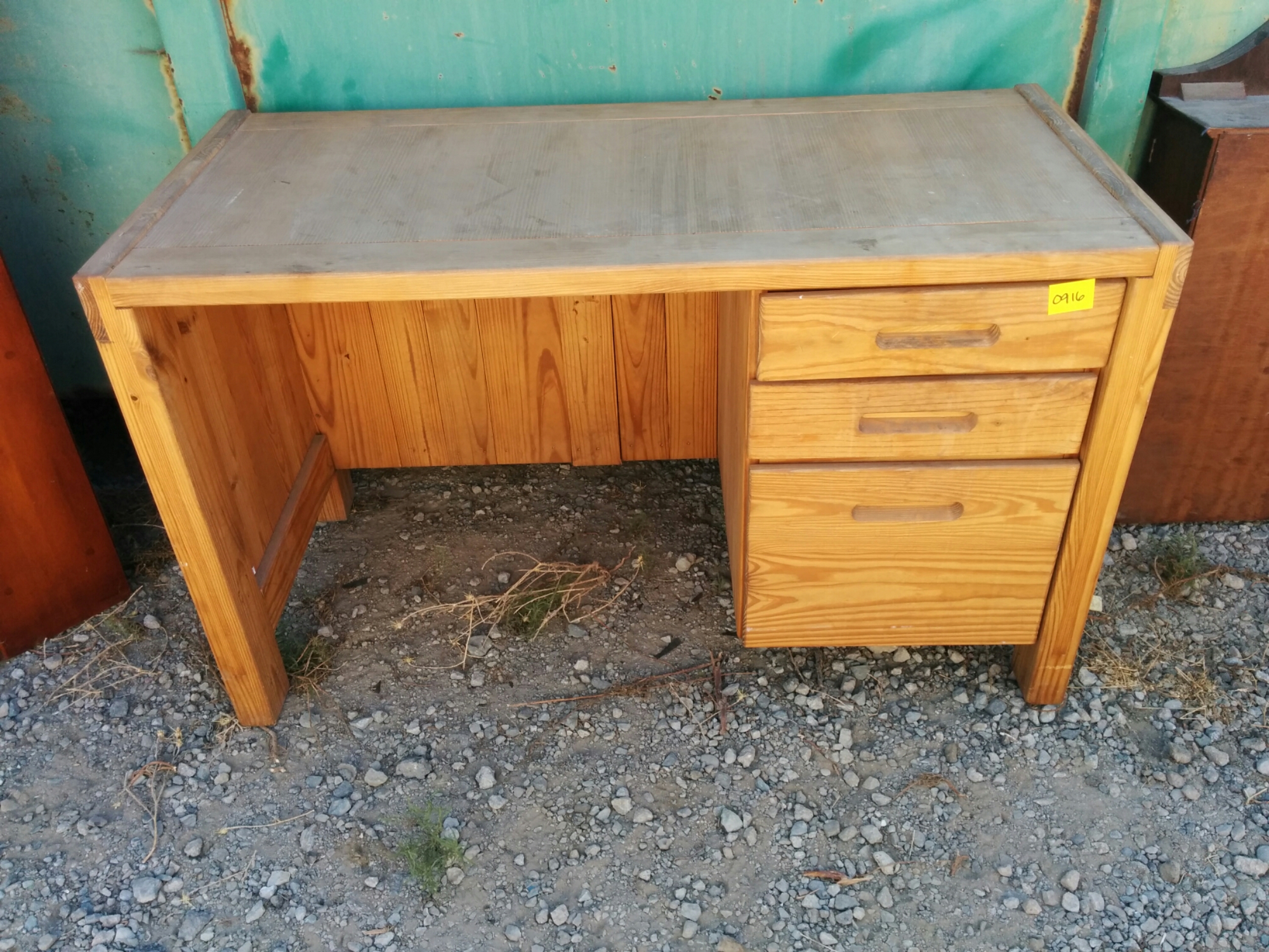 *SOLD* 0916 Oak Desk Dumped, SOLD Solid oak except for bottom of drawers, some type of composite. Good thing as otherwise would be really really heavy. No major damage that sanding can’t take care of. 30″H x 50″ w x 23.5″D