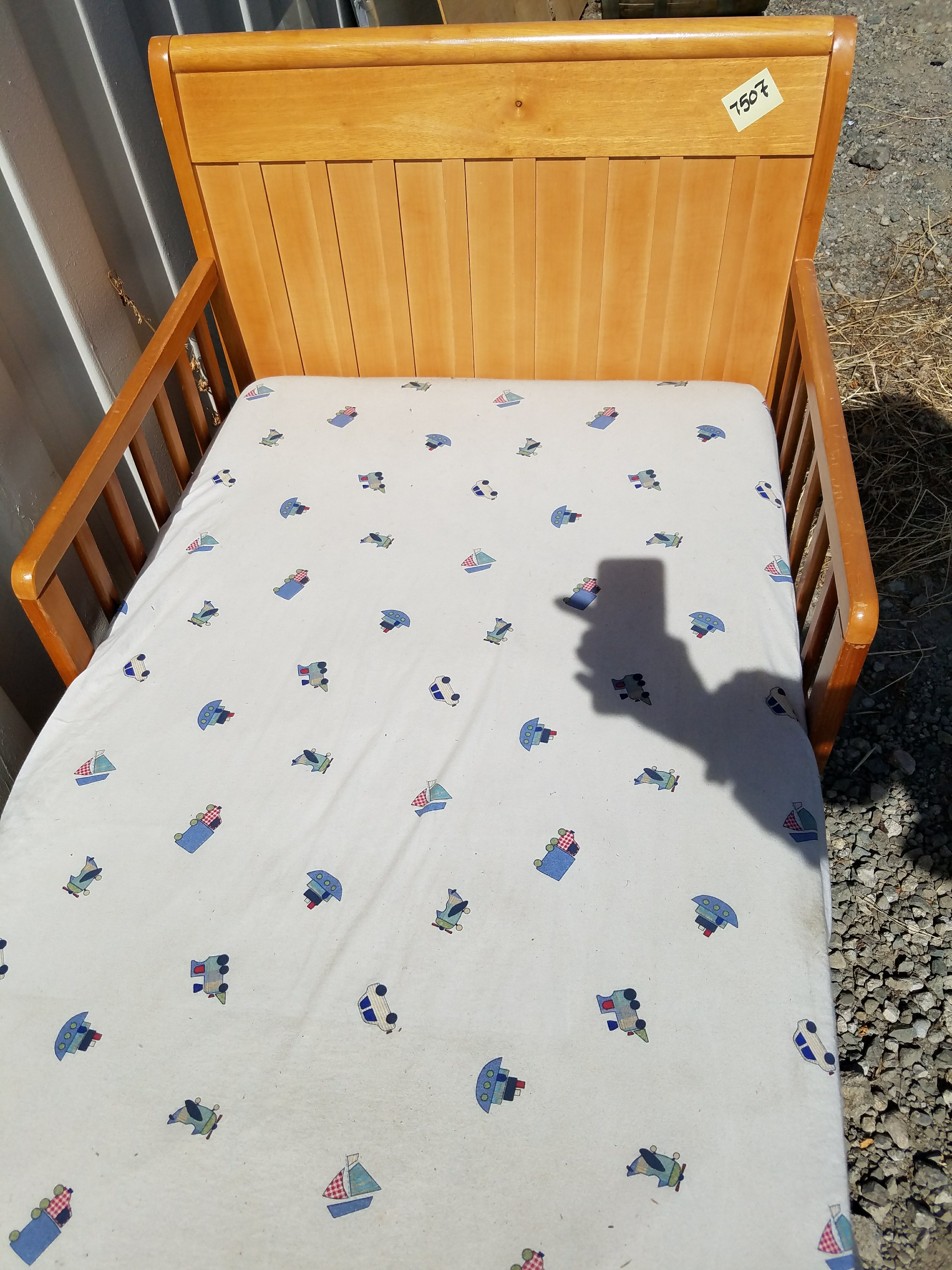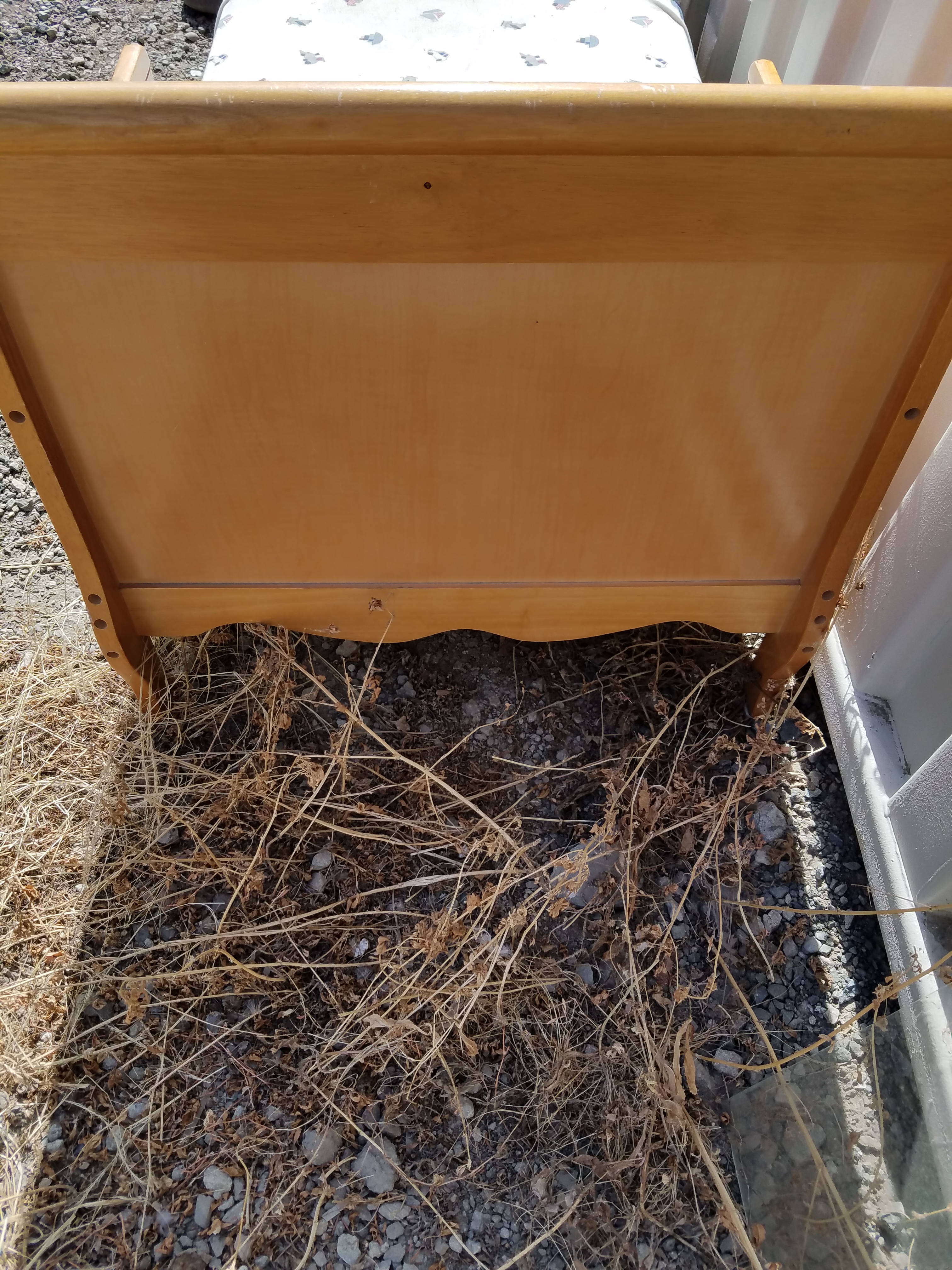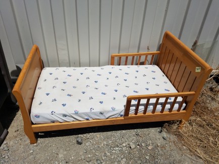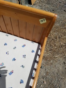 *SOLD* 7507 Youth Bed Dumped, Furniture, SOLD Solid wood bed ready to be painted. Foot board is 23″H, headboard is 28″H 56″ Long x 29″ W. 9″ high from the ground to bottom of mattress. No visible damage.