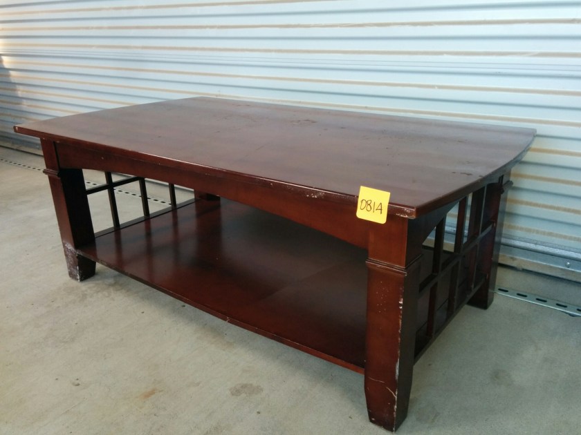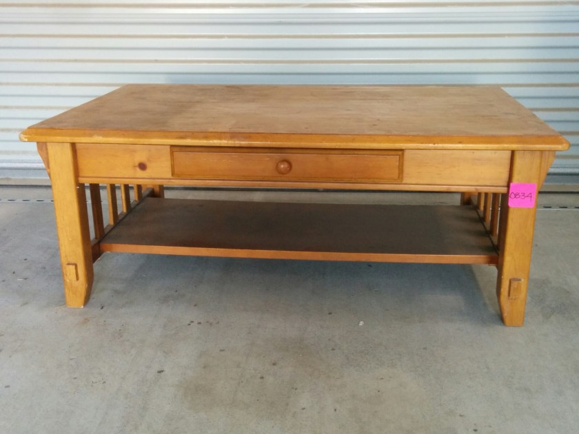 *SOLD* 0834 Medium Mission Style Coffee Table Dumped, SOLD Solid wood. Beveled edge. 17″H x 45″W x 28″D