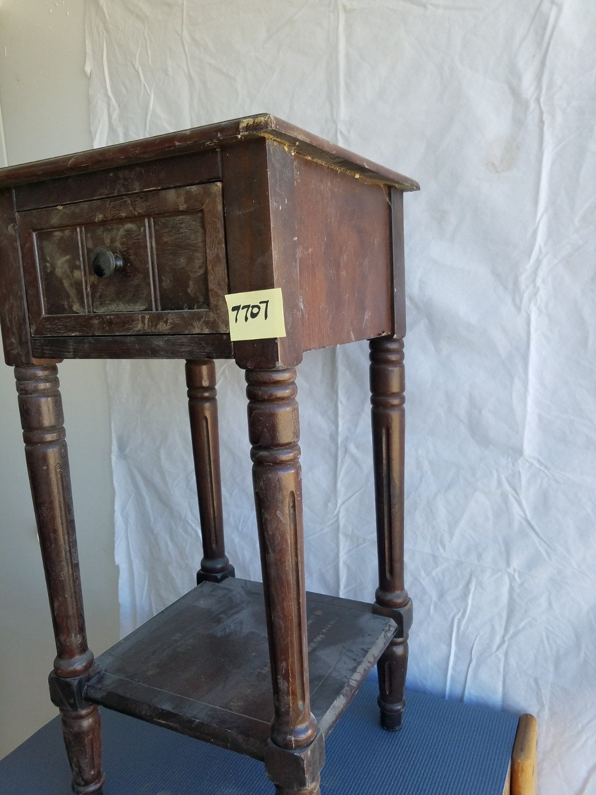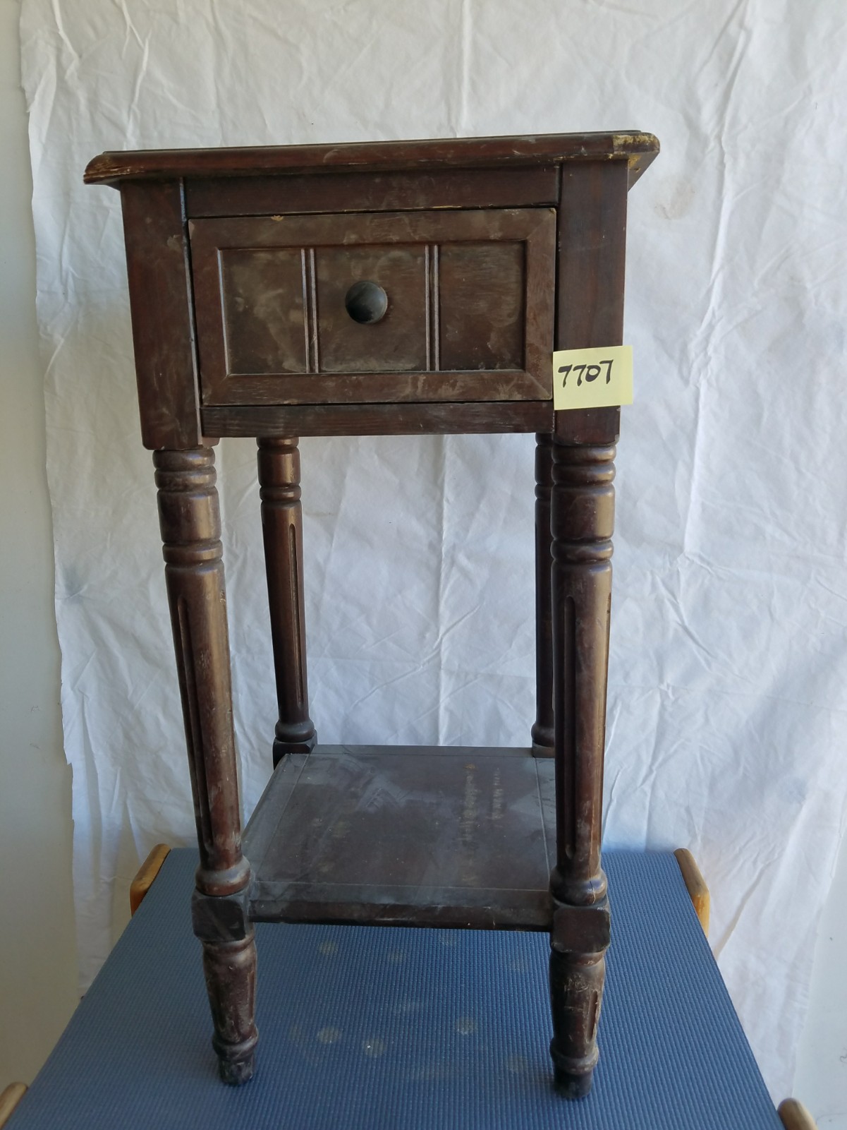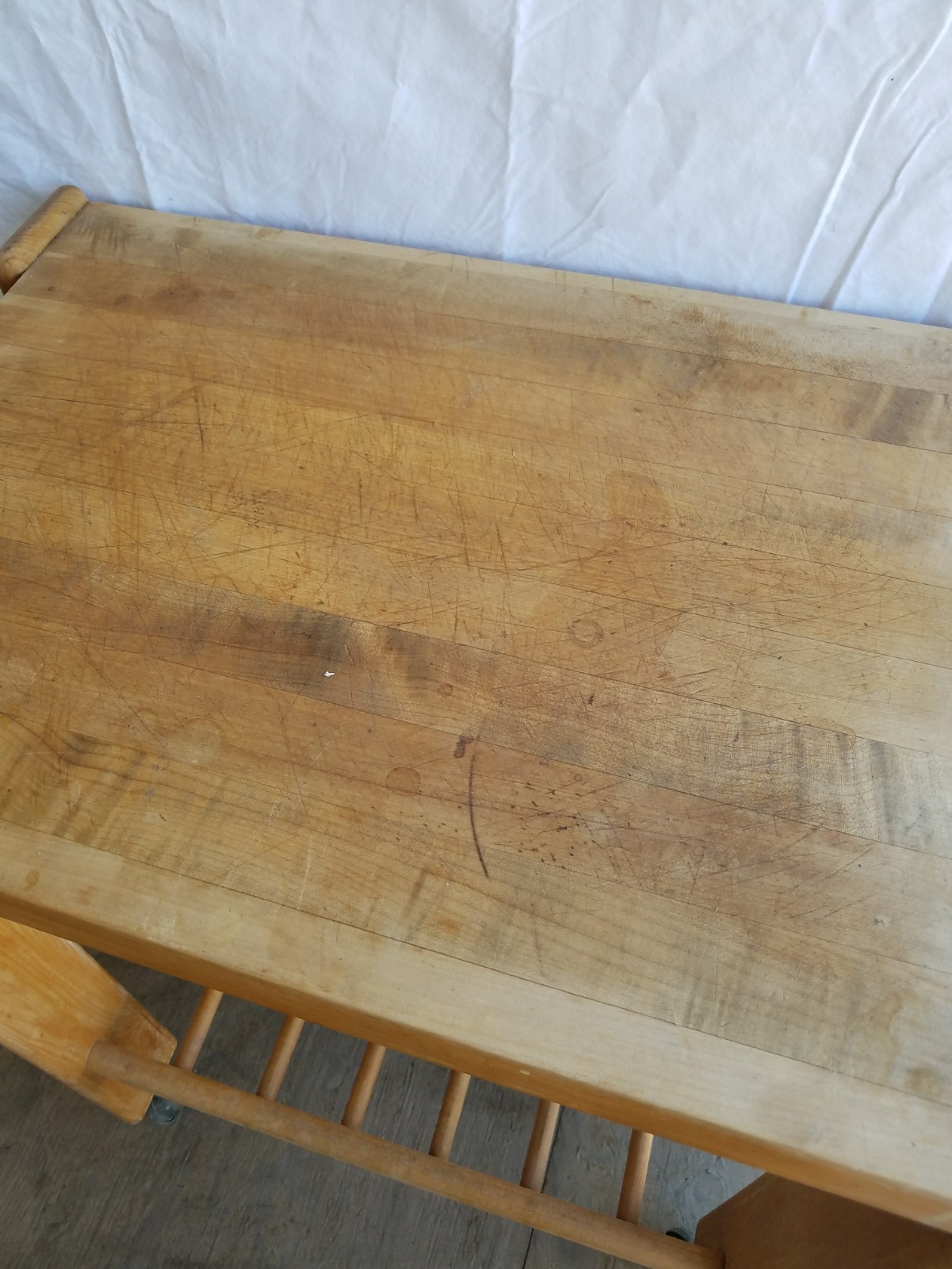 It looks like it could be a rolling liquor bar because it has a metal bar on the shelves so stuff does not fall out. The bottom shelf is fairly tall and could fit bottles in it. It has a drawer for accoutrements! Just a thought. It is missing a wheel. You could take the other three off or buy 4 to keep it rolling!