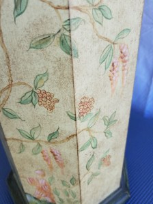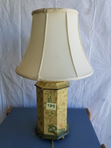7703 Oriental Motif Lamp Available Seam decor on shade is loose. Dirty but seems to be in decent condition. 26″H – the base is 8″x8″