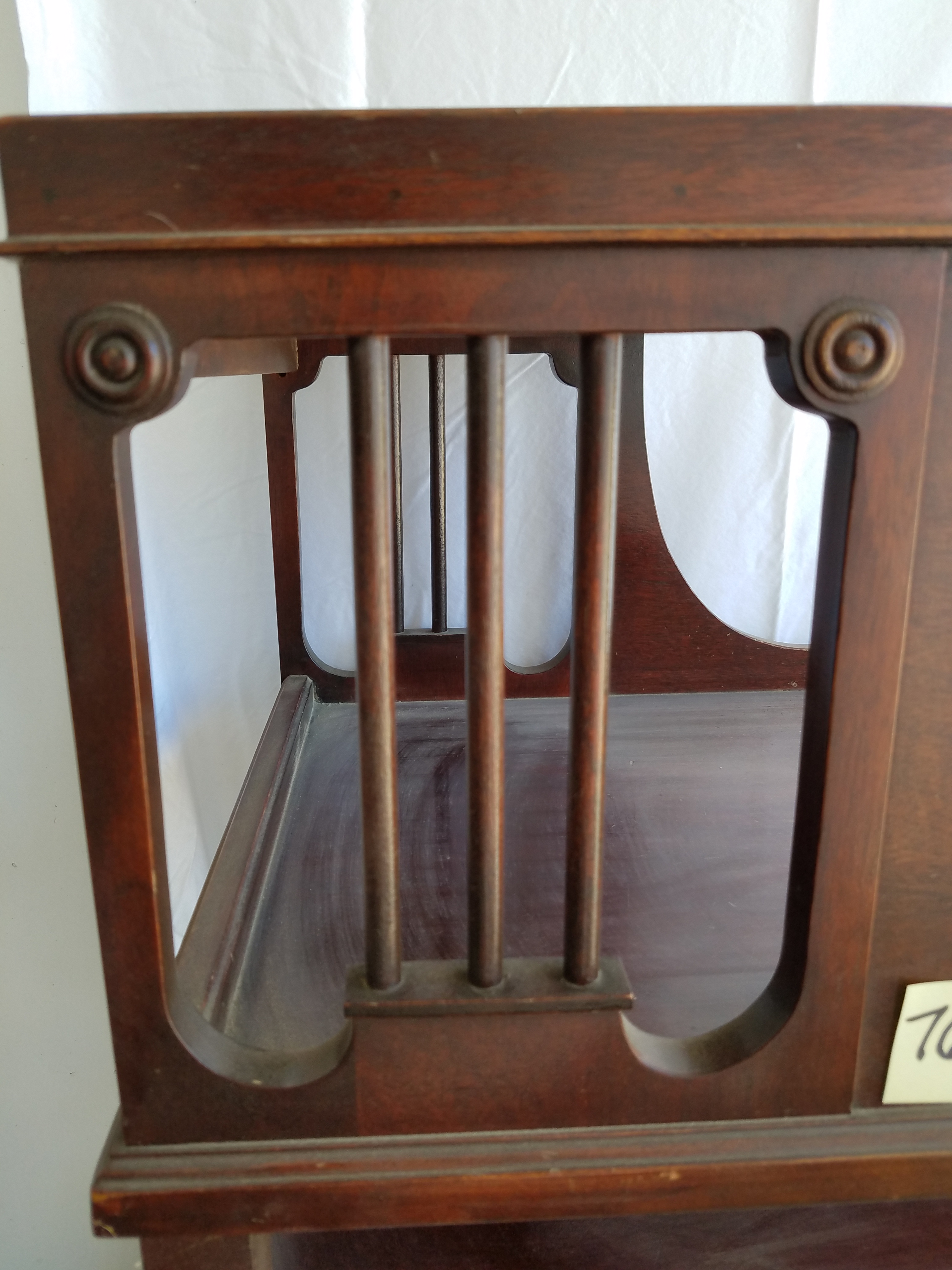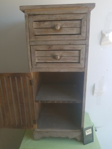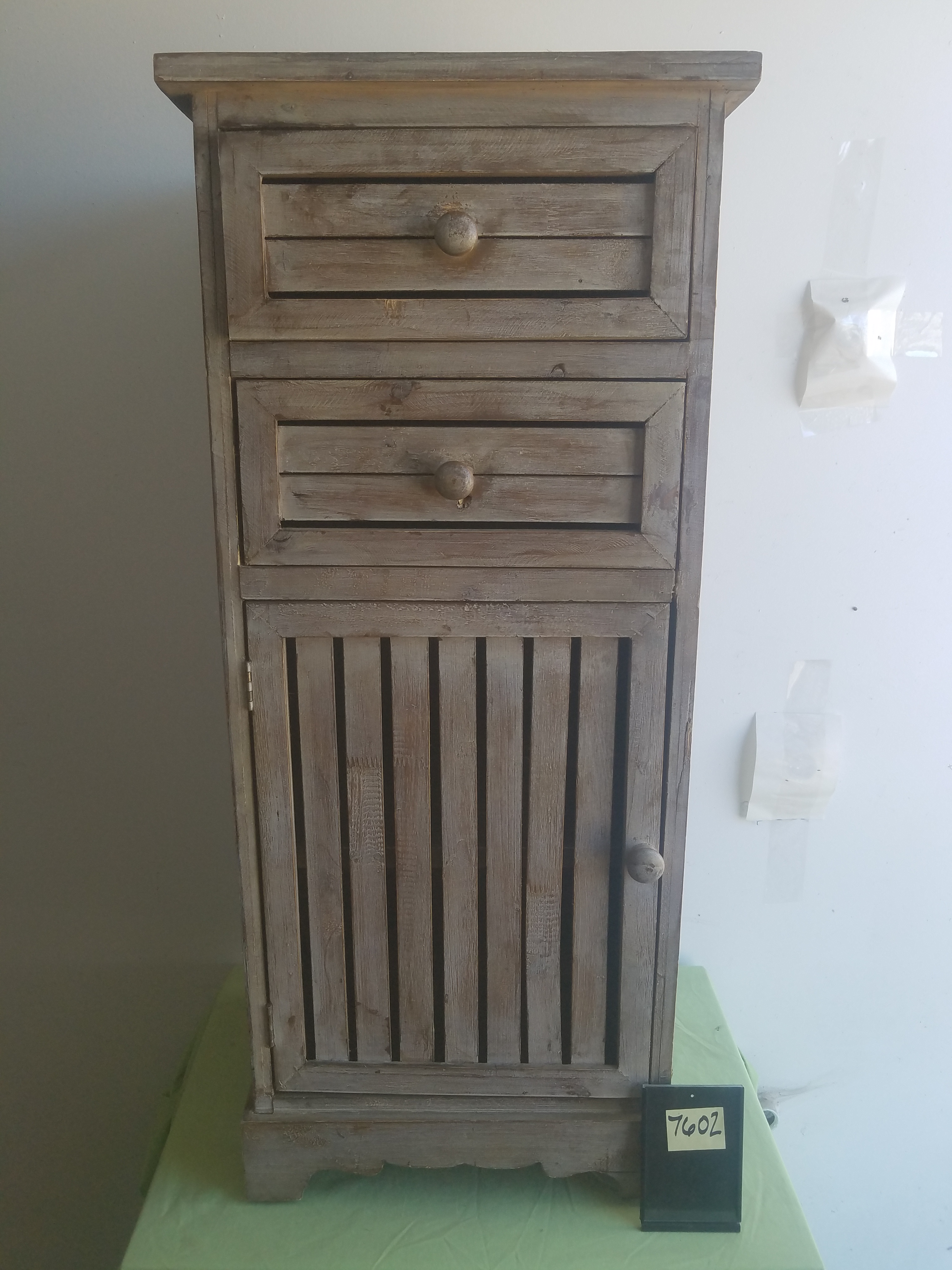 *SOLD* 7602 Small Slat Cabinet Furniture, SOLD All wood, some cracks. Bottom shelf is not removable. 38″H x 16.5″w x 13.5″ D