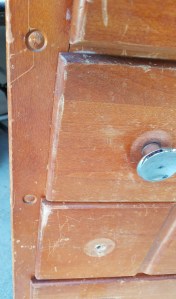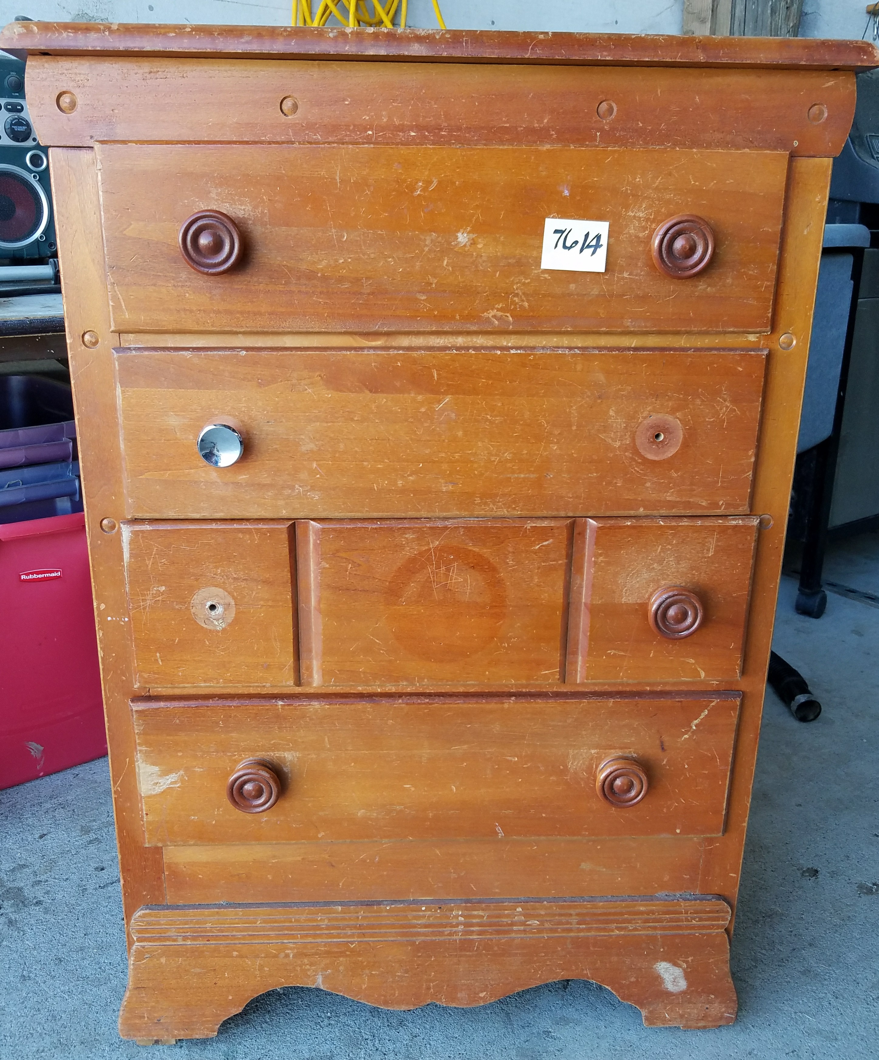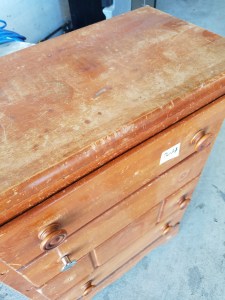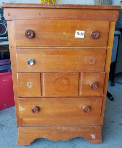 *SOLD* 7614 Short Small Adorable Tall Boy Chest of Drawers Furniture, SOLD Very cute. Solid wood but not very heavy. Needs TLC. Obviously missing knobs. 37.5″H x 26″W x 14″D