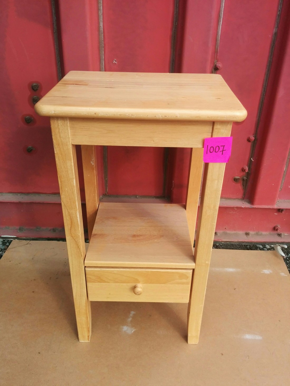 17″ to seat + 19″ back, 22″W x 19″D. OK condition, deep gauges. Nice Wood.