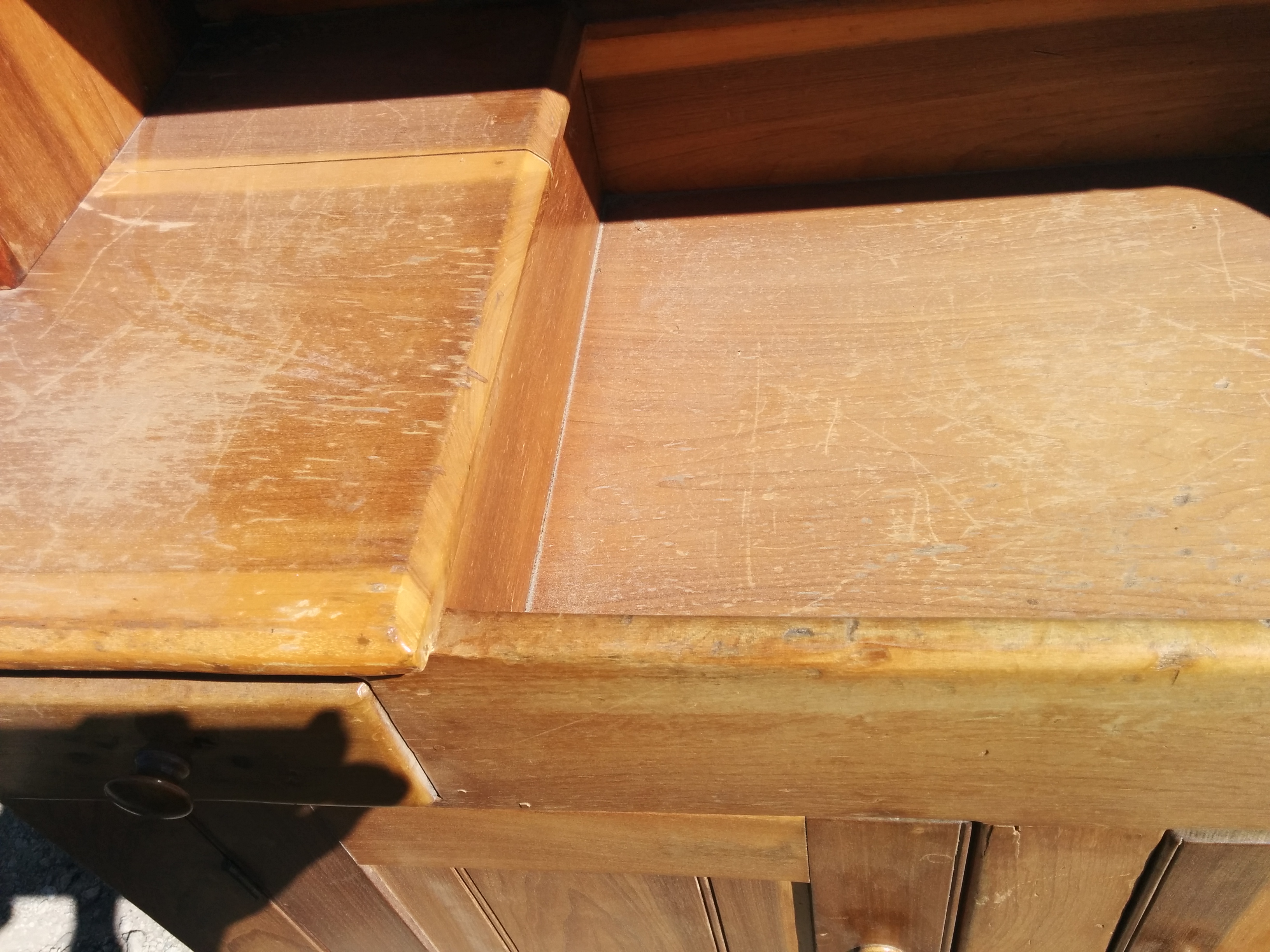 SOLDThis hutch was custom crafted by someone to accommodate a specific purpose. The drawer is dovetailed. Very sturdy. Not sure what the empty area is for but it is finished nicely.