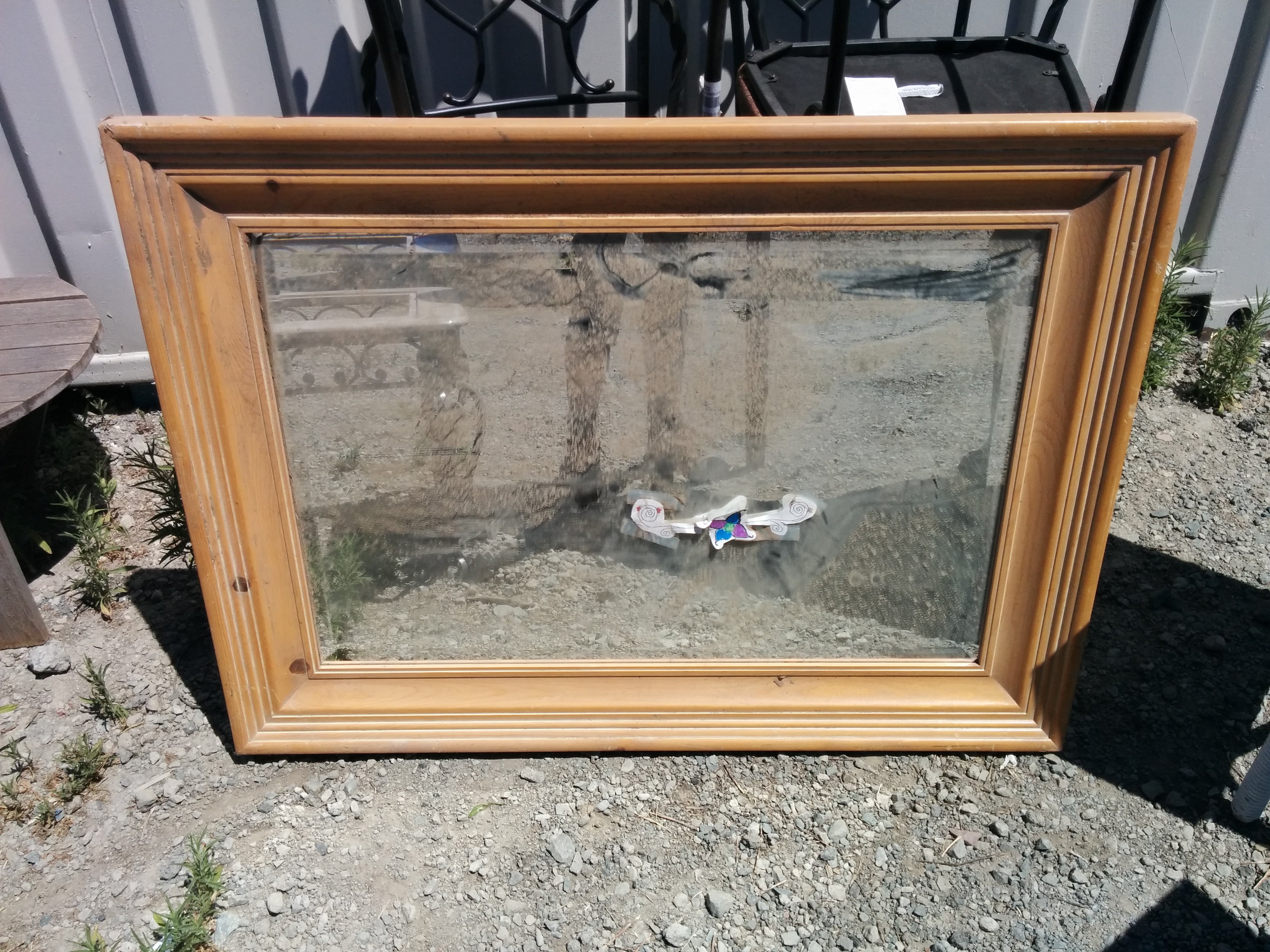 *SOLD* 0710 Mexican Wood Frame Mirror SOLD 45″ x 33″ – solid wood frame is 5″ thick. Fairly good condition, no major scratches or dents. Nice. Just need to clean the glass…