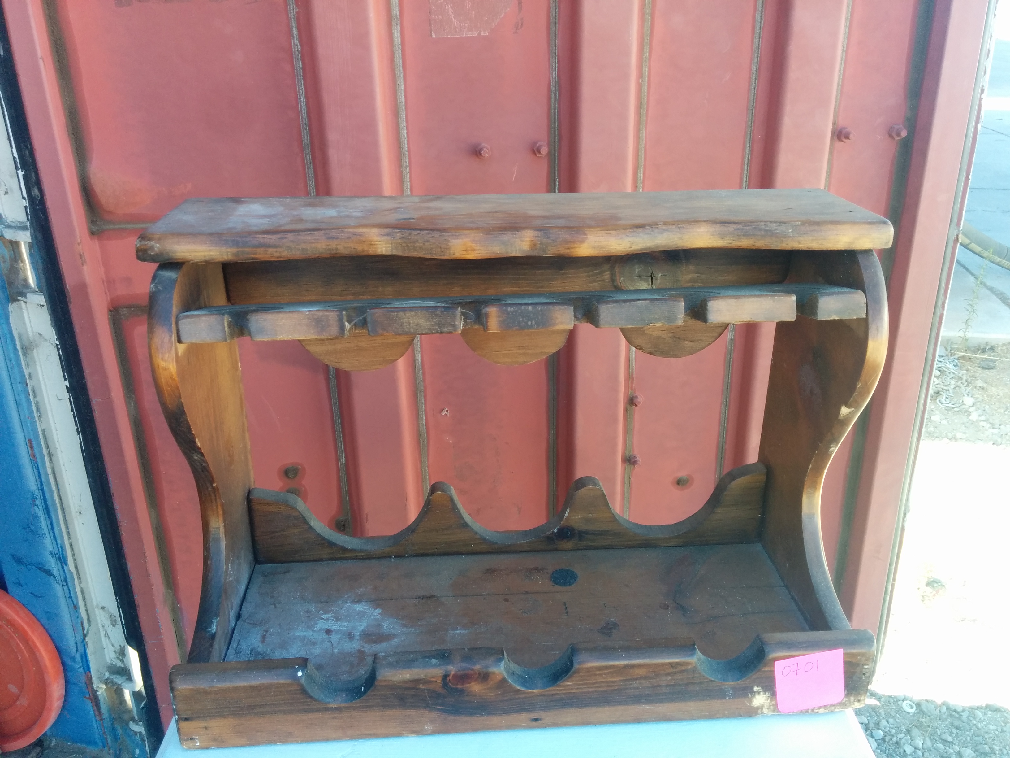 *SOLD* 0701 Small Wine Glass Rack SOLD 14″H x 20″W x 9.5″ D on the bottom. Top is 5.5″ Deep (front to back)