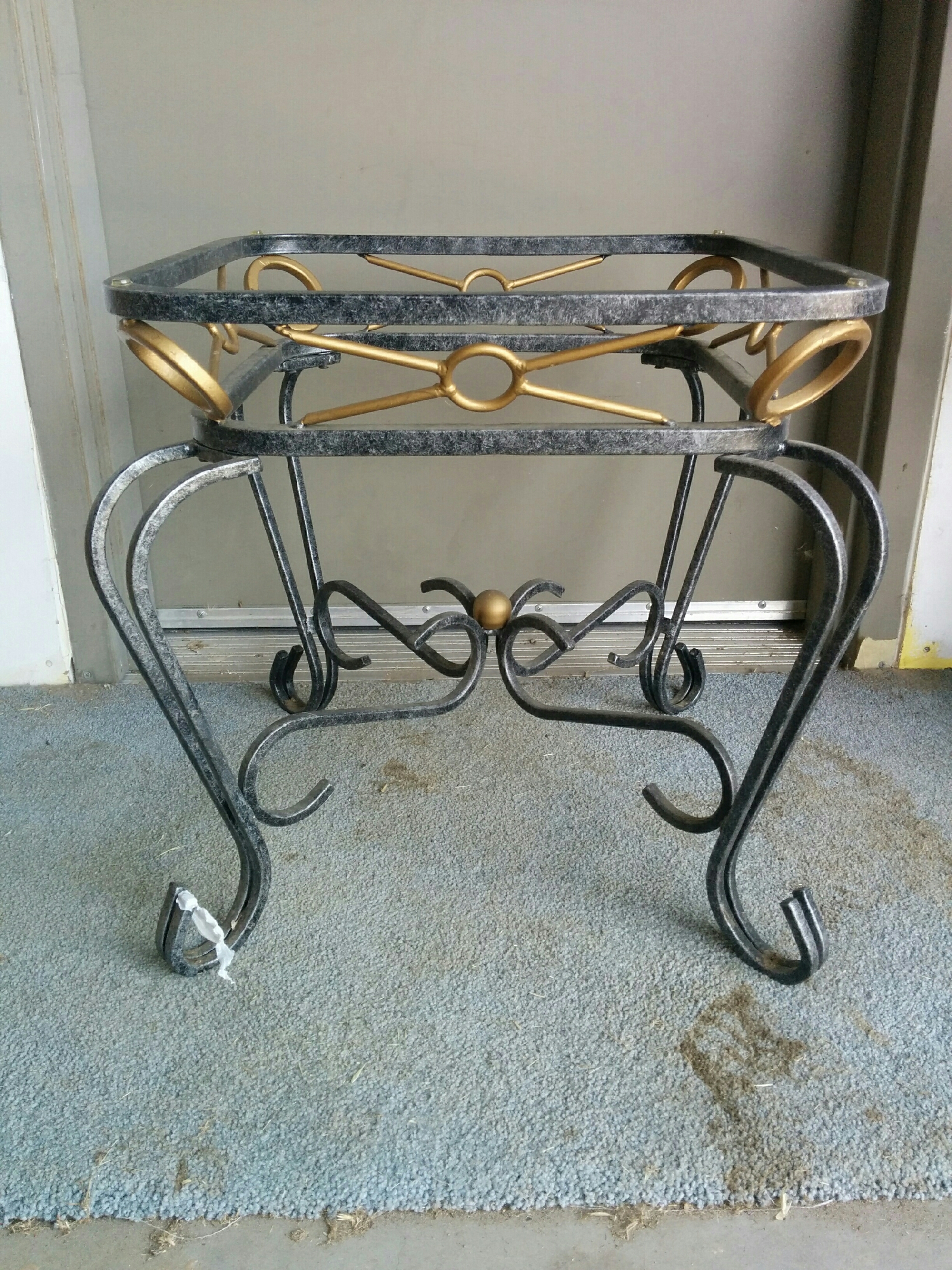 *SOLD* 0607 Two Beautiful Iron Tables SOLD Beautiful. no damage. Missing top. I can have plywood tops made for an additional minimal fee. 21 x 20 x 20