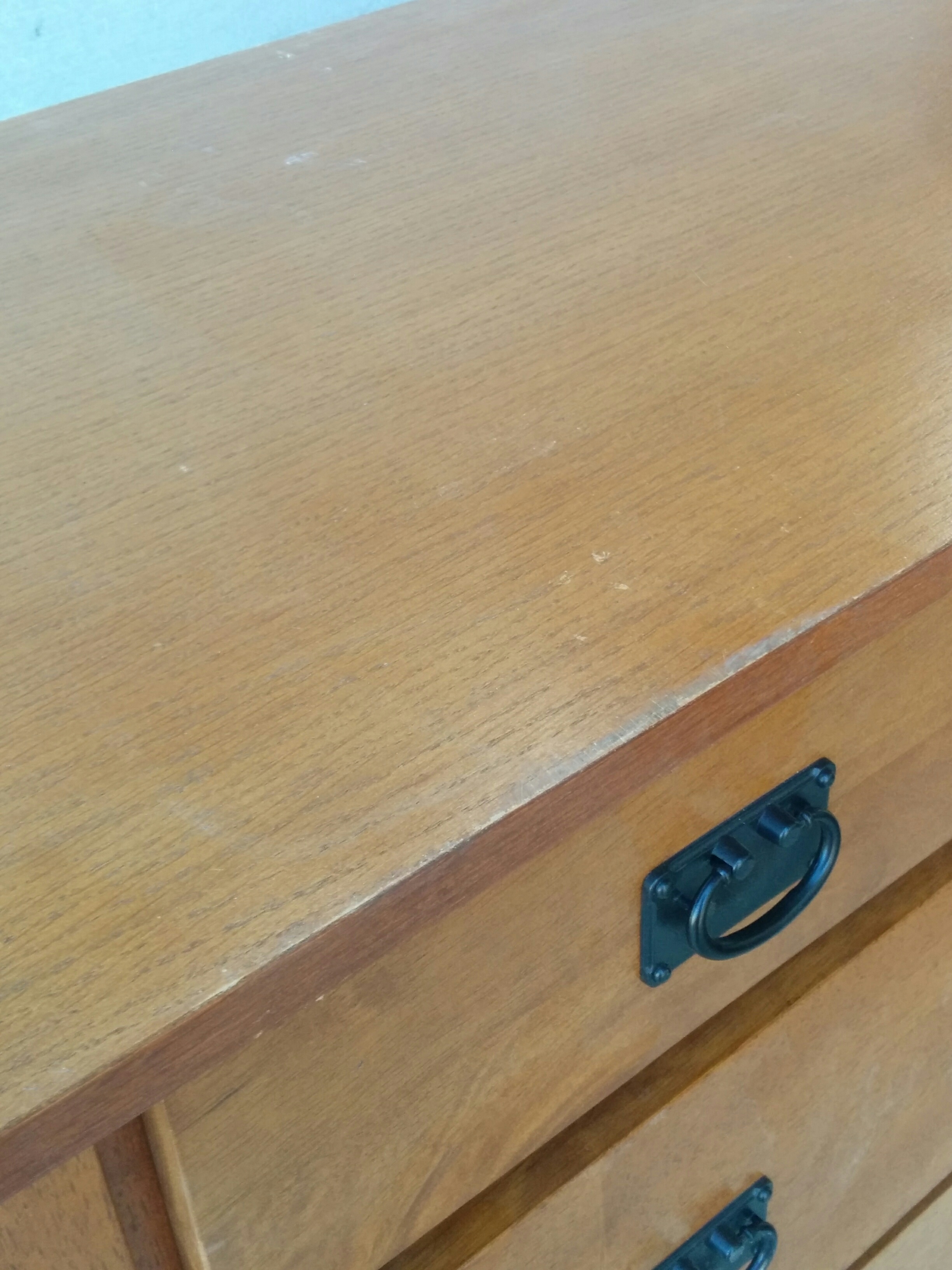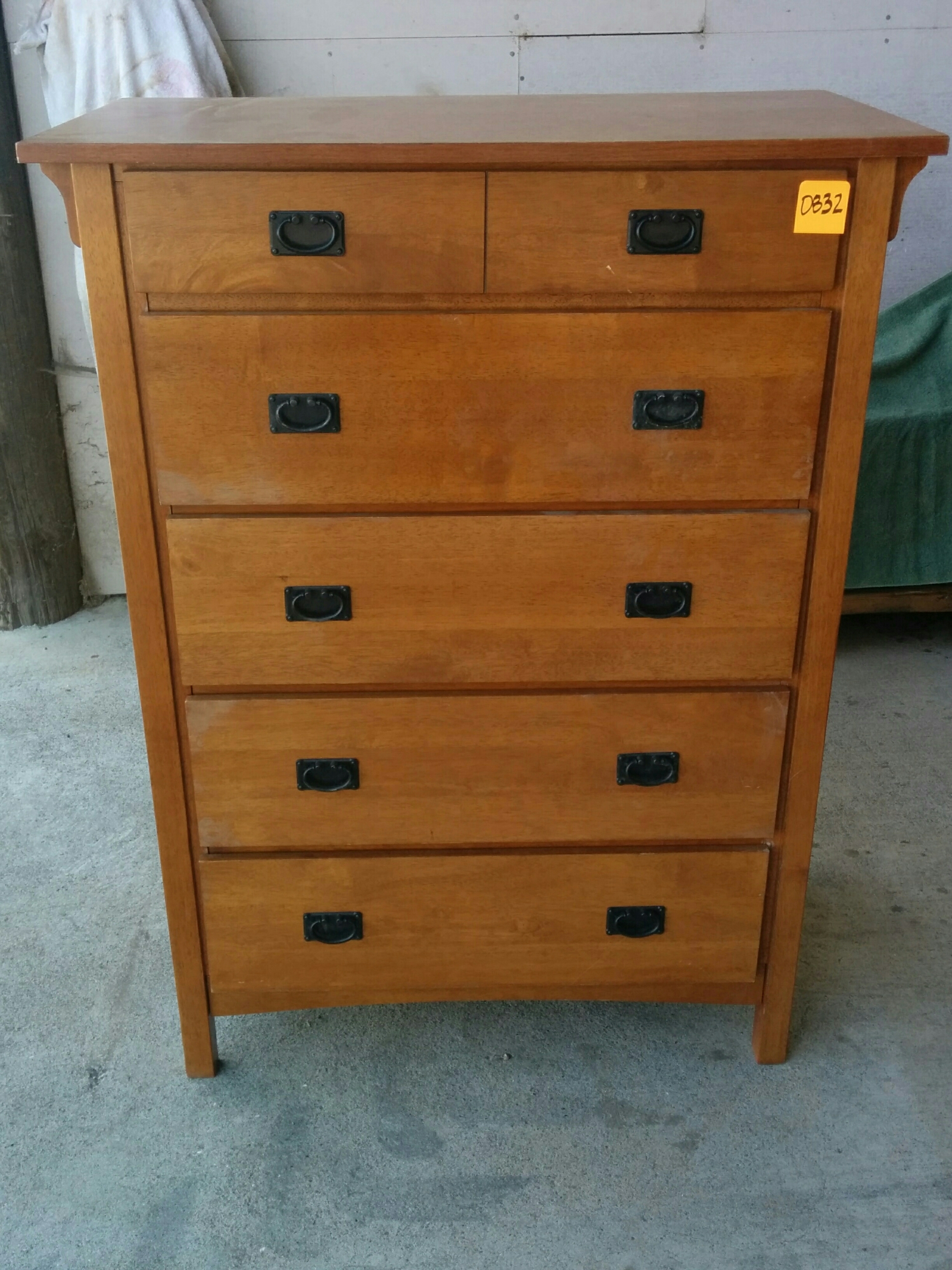 *SOLD* 0832 Chest of Drawers SOLD Wood exterior but particle board inside. Drawers have rails so they work well. 48″ H x 36″W x 20″D top edge a little worn.